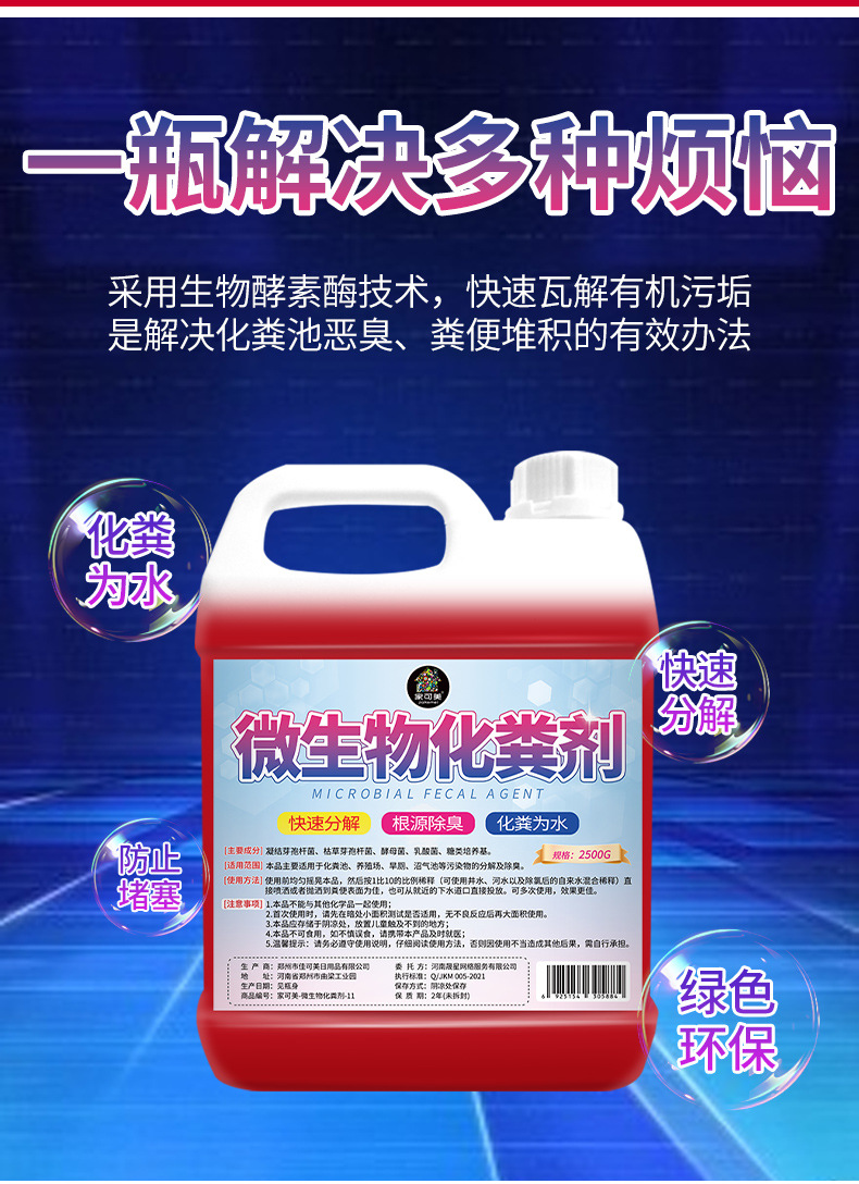 浄化槽溶解剤、糞便分解剤、下水道乾式トイレ詰まり、微生物溶解、消臭分解剤