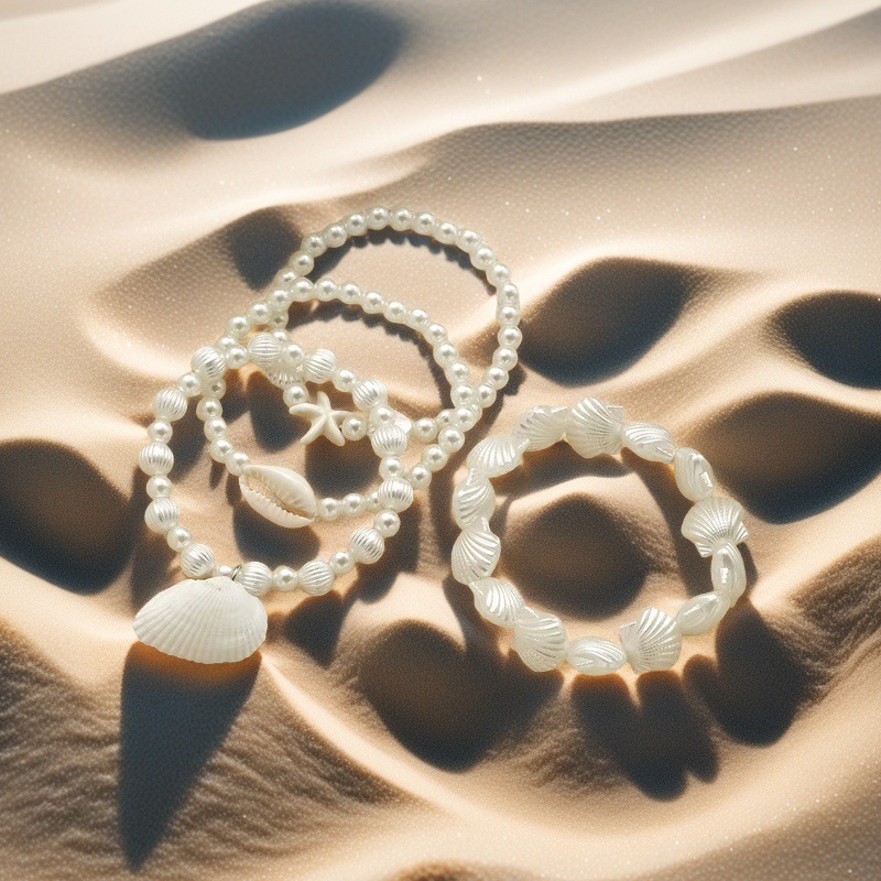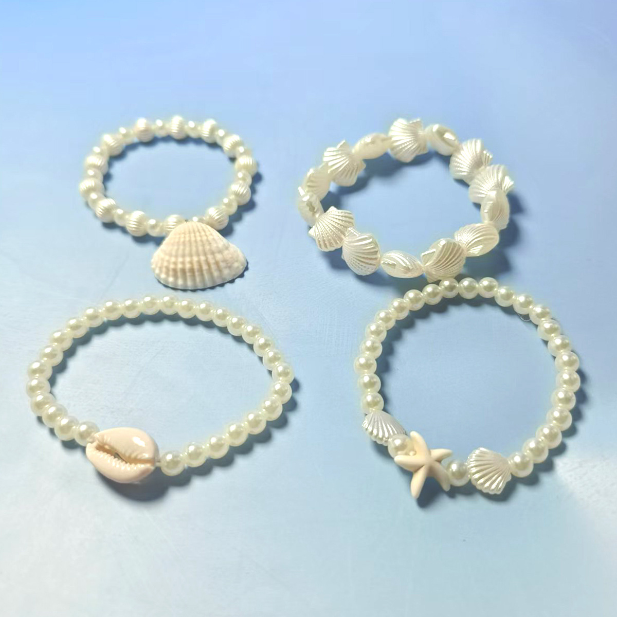海洋風貝殻の四つのセットは真珠の海星のビーズの弾力性のブレスレットをまねます。