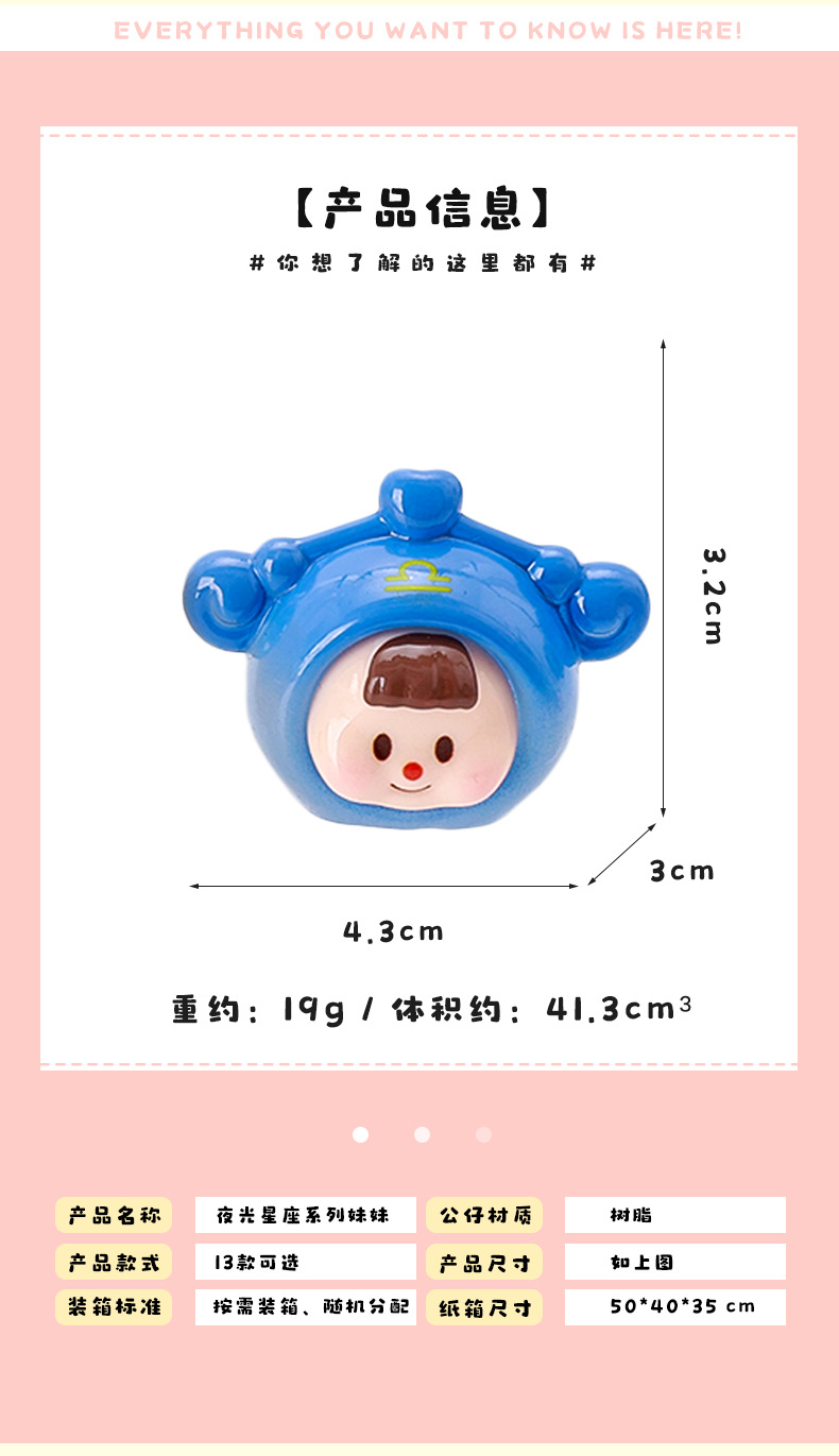 夜光星座シリーズ妹萌粒公仔樹脂工芸品のデスクトップ置物生放送
