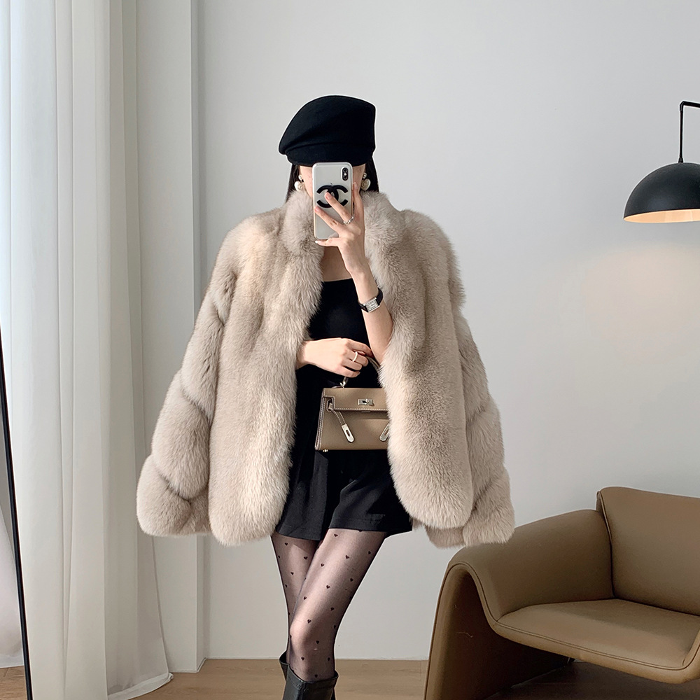 厂家批发新款狐狸毛领青果领 秋冬时尚气质加厚女士保闲皮草外套