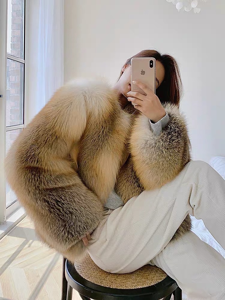 恺迪罗澜[巴黎秋日]金岛狐大衣狐狸毛皮草外套短款水貂
