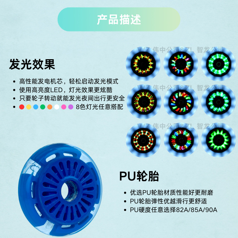 発电ホイール自発电新品スケートボード用12030PU発电ホイール85APU 82APU発光ホイール