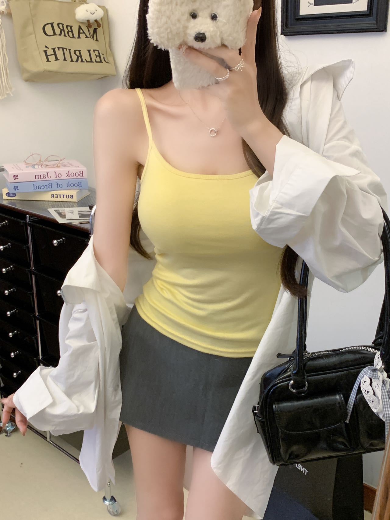 9083 # キャミソール女性の下着が胸を広げている上着の美背デザイン感が小さい