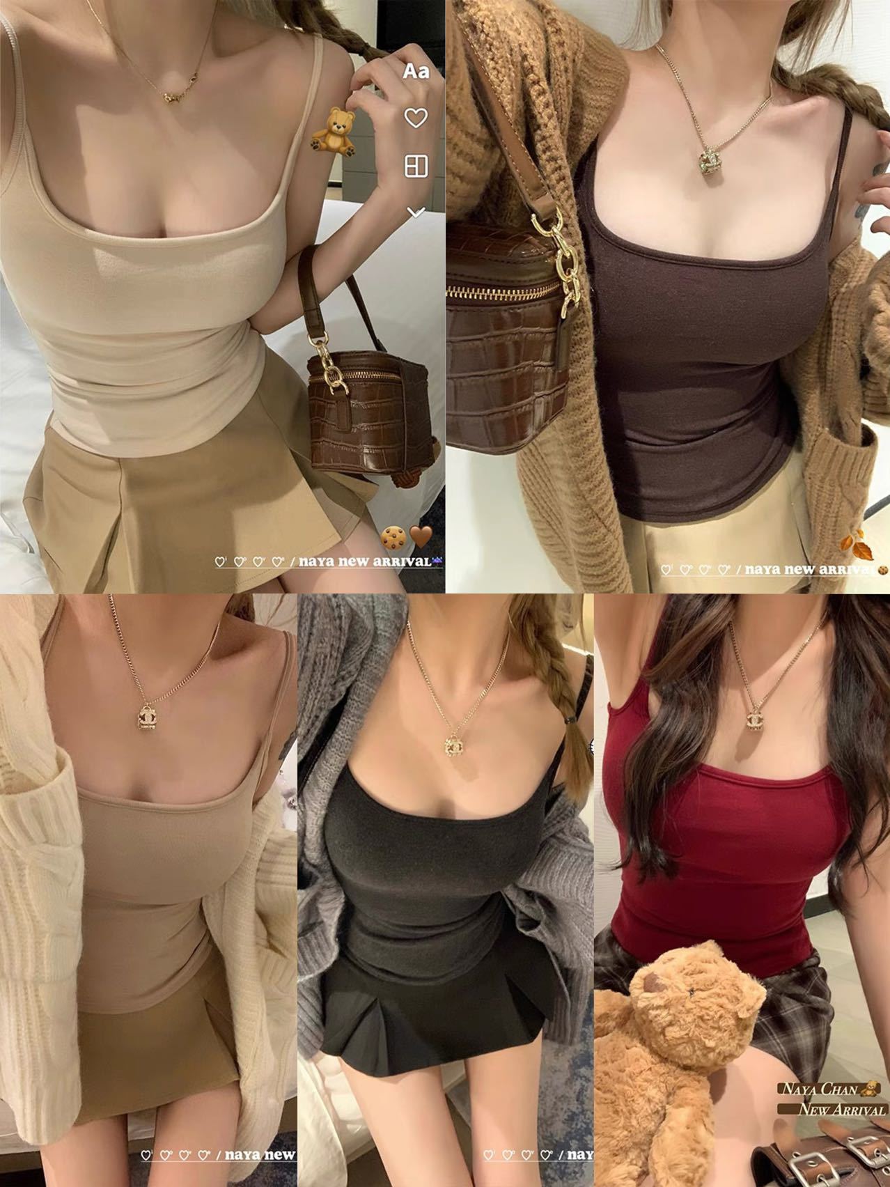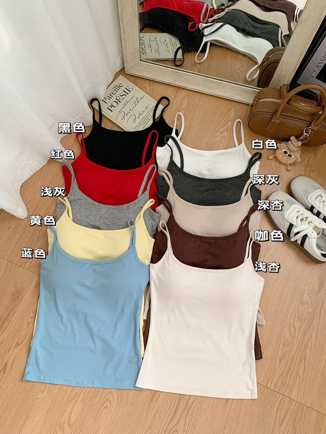 10172#初秋新款纯欲U领双面磨毛保暖吊带背心修身固定带胸垫百搭