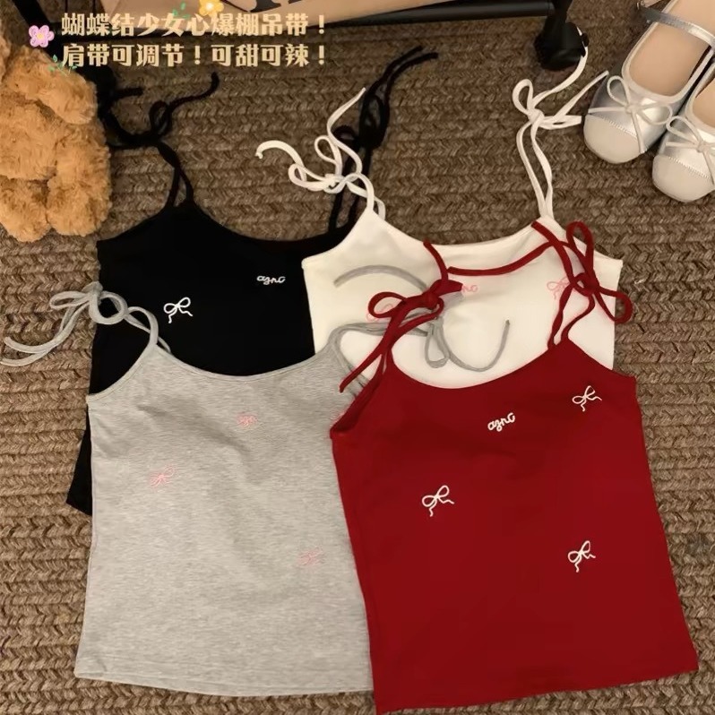 春夏新款甜辣背心小吊带女带胸垫蕾丝边打底衫氛围内搭修身上衣