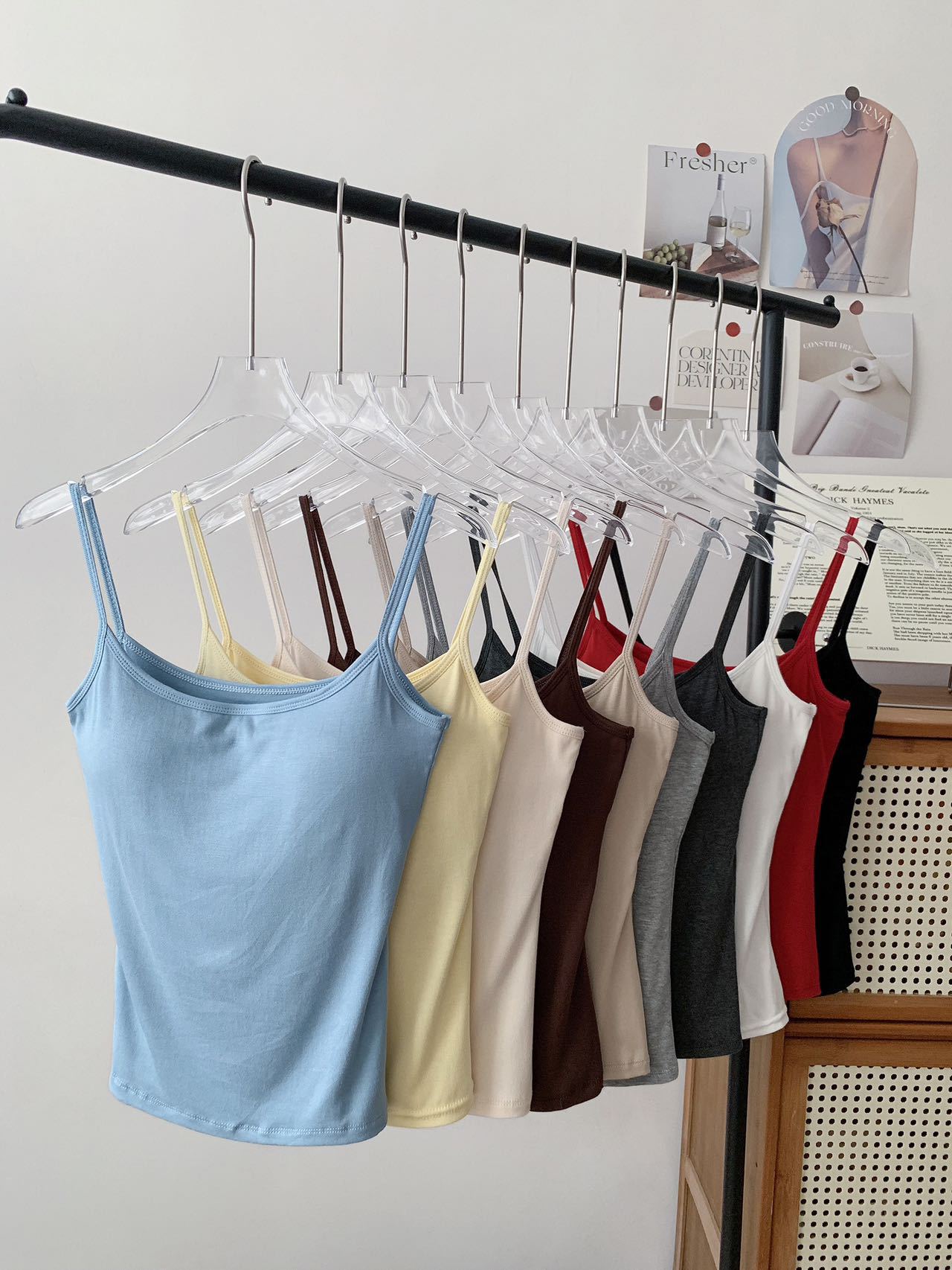 夏季自带胸垫小吊带背心女紧身修身纯欲打底美背内搭外穿短款上衣