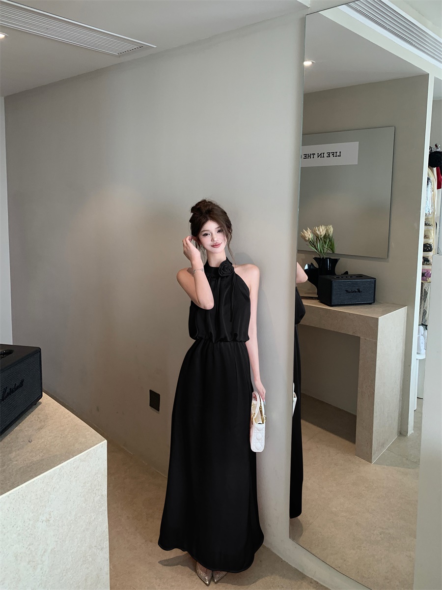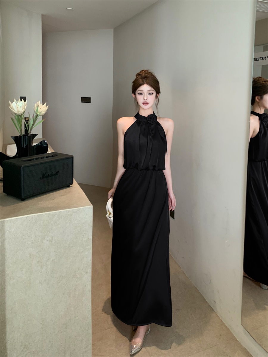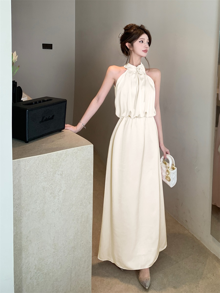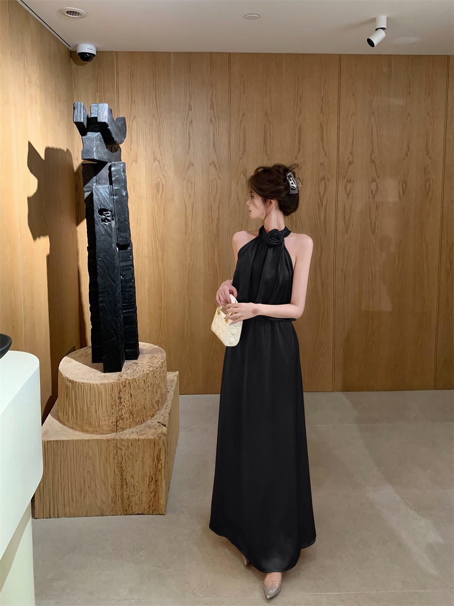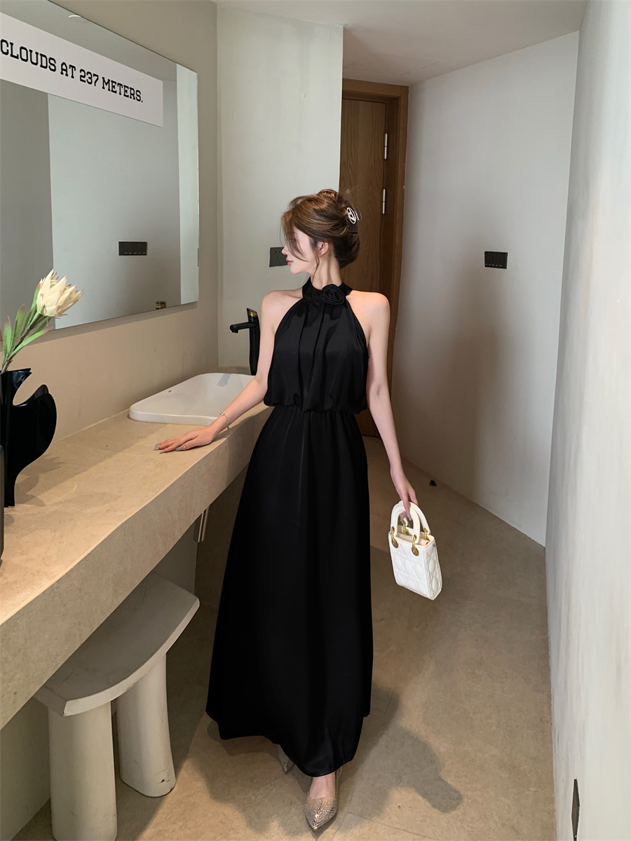 高级法式夏季套装立体花朵气质无袖背心缎面上衣高腰半身裙两件套