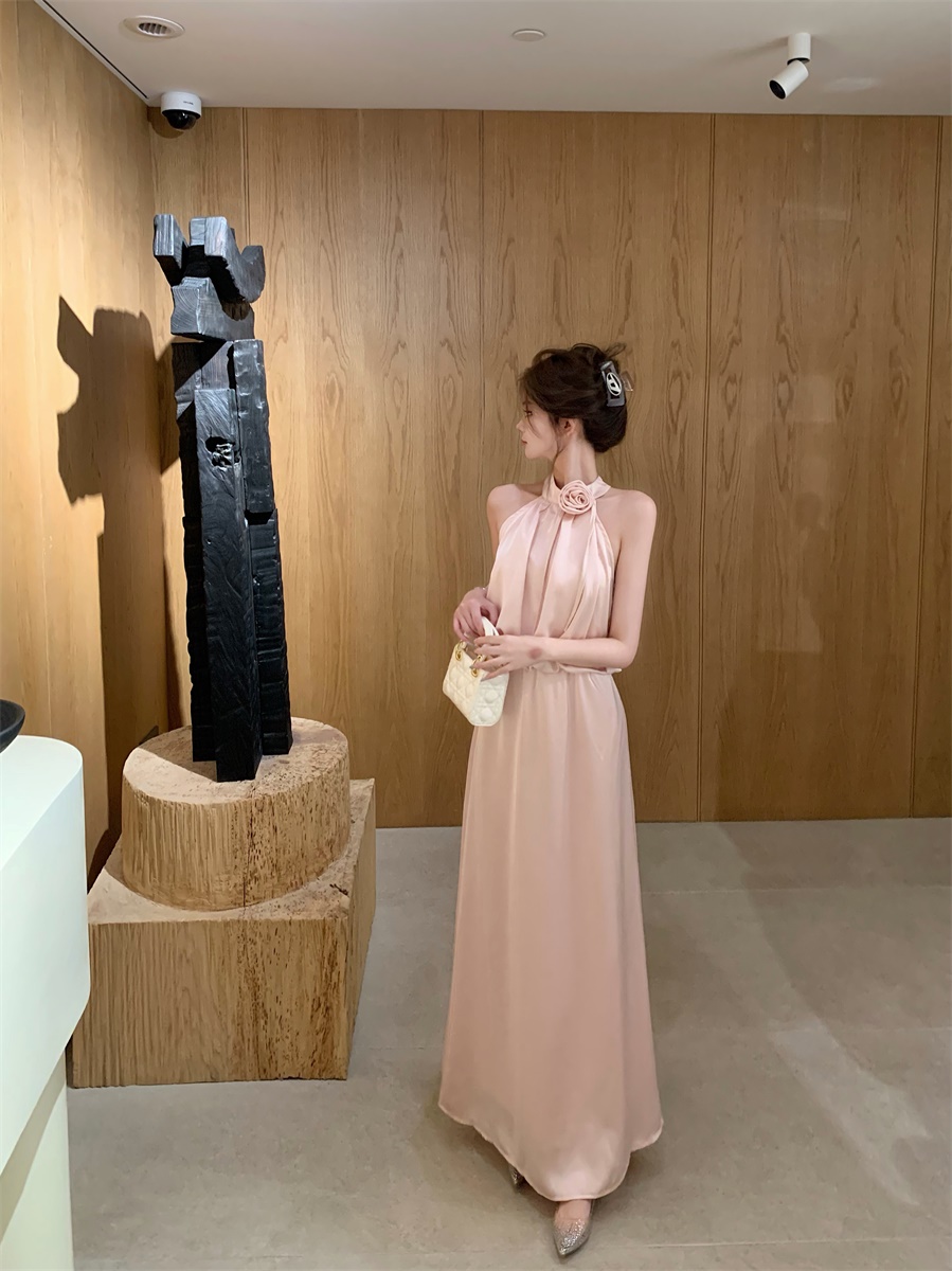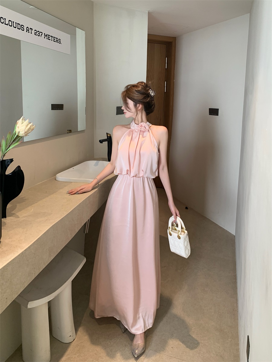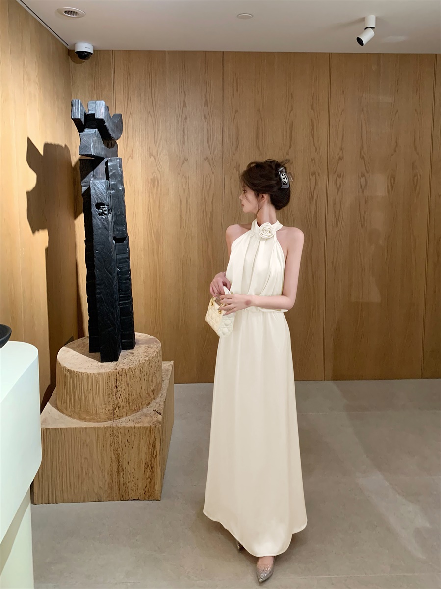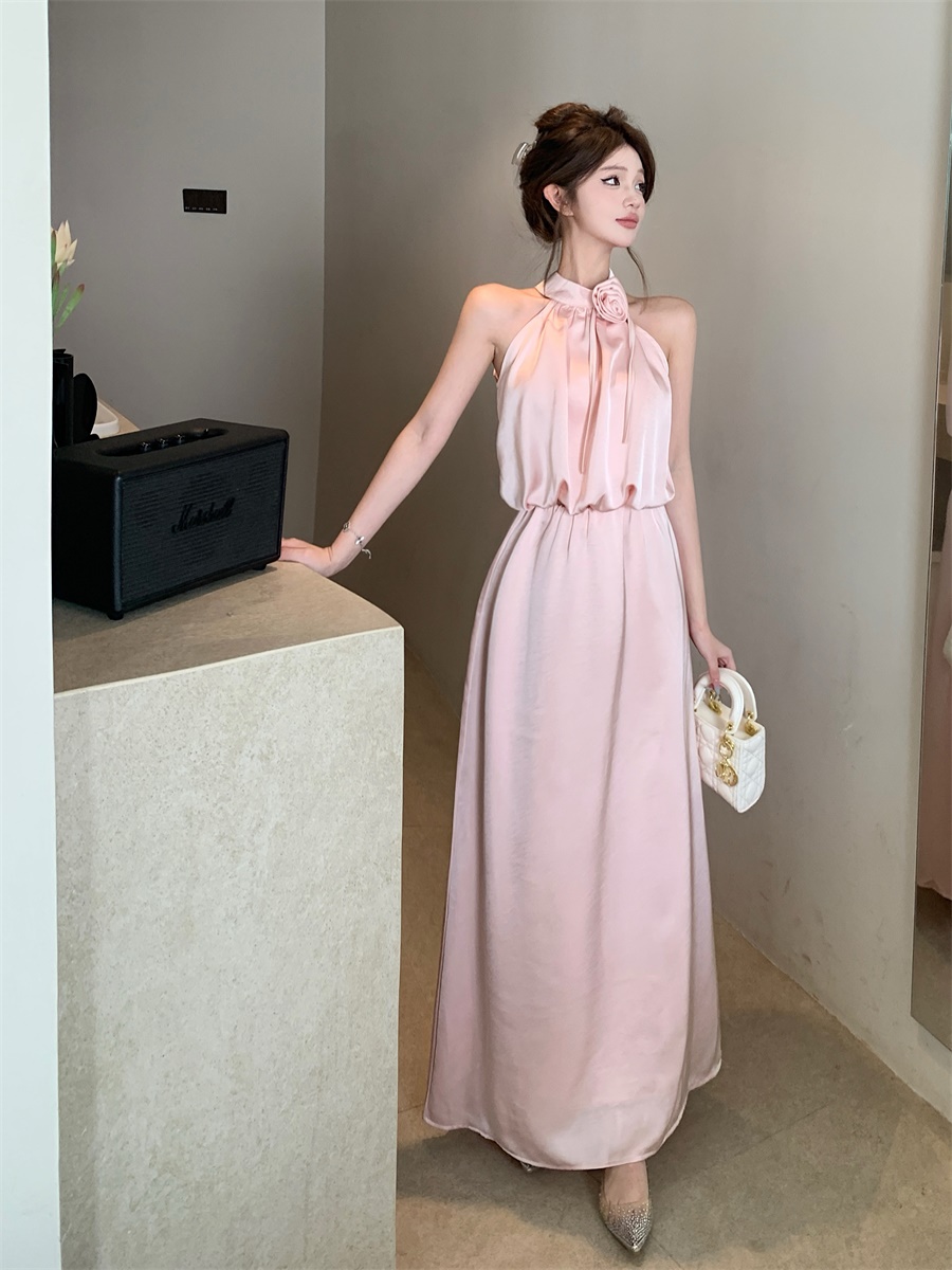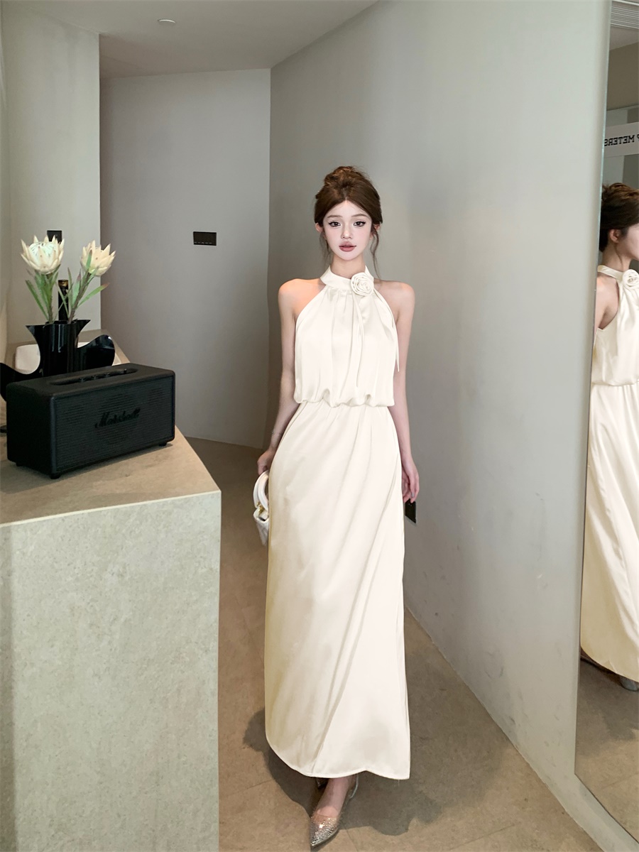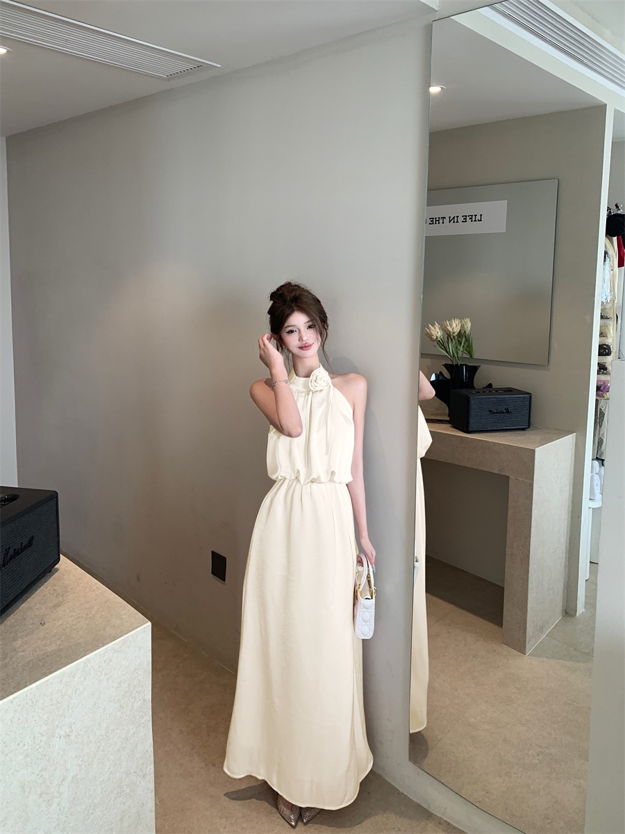 高级法式夏季套装立体花朵气质无袖背心缎面上衣高腰半身裙两件套