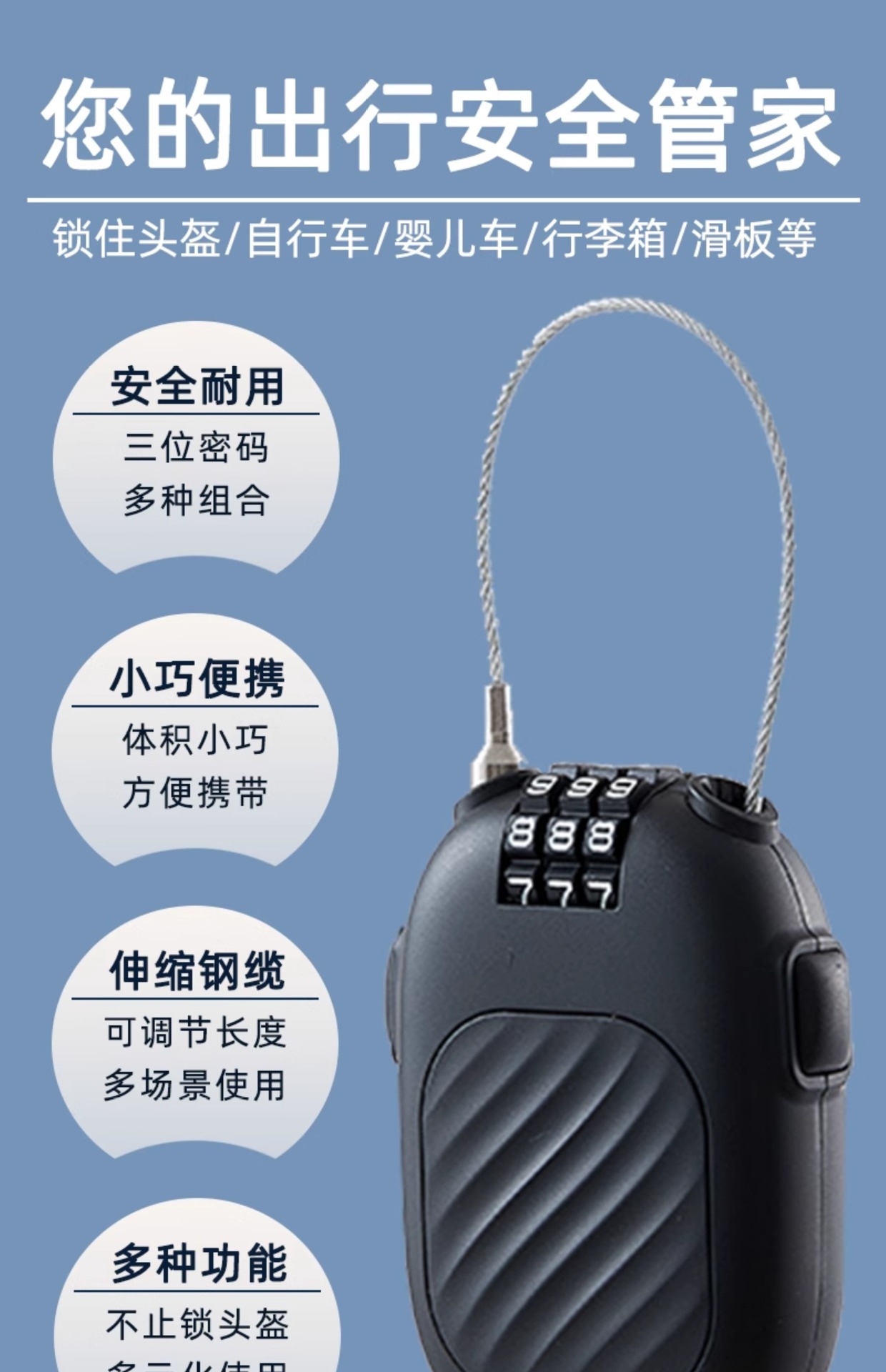 ミニ伸縮可能なワイヤーロープのパスワードロック旅行盗難防止安全ロックフィットネス自転車ロック延長ケーブルロック