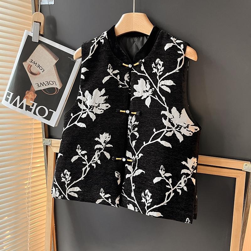 2025起爆金復古盤バックル重工ジャカード唐装ベスト馬挟み新中国式カン肩小柄上着馬甲