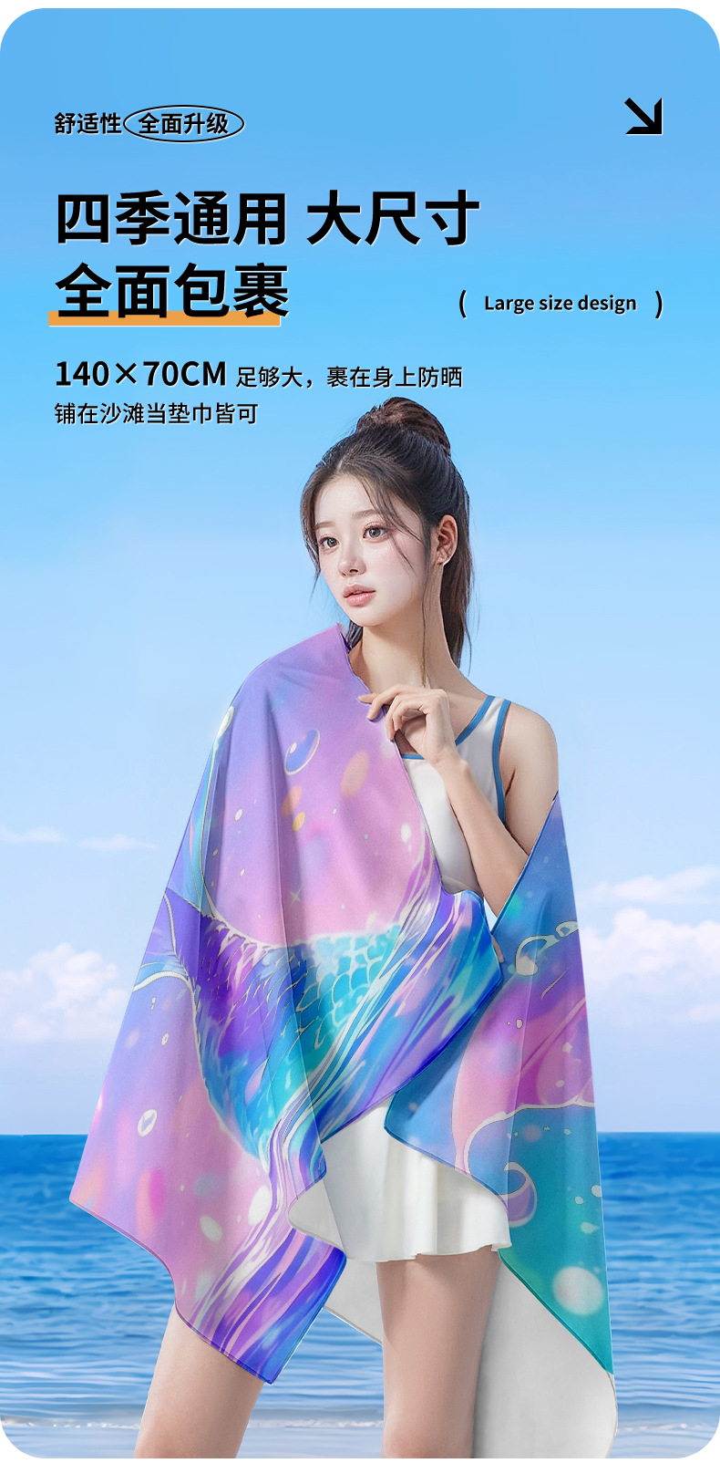 シーサイドビーチタオル速乾バスタオルプリントポータブルスポーツ水泳バスタオルビーチタオルフィットネス速乾タオル