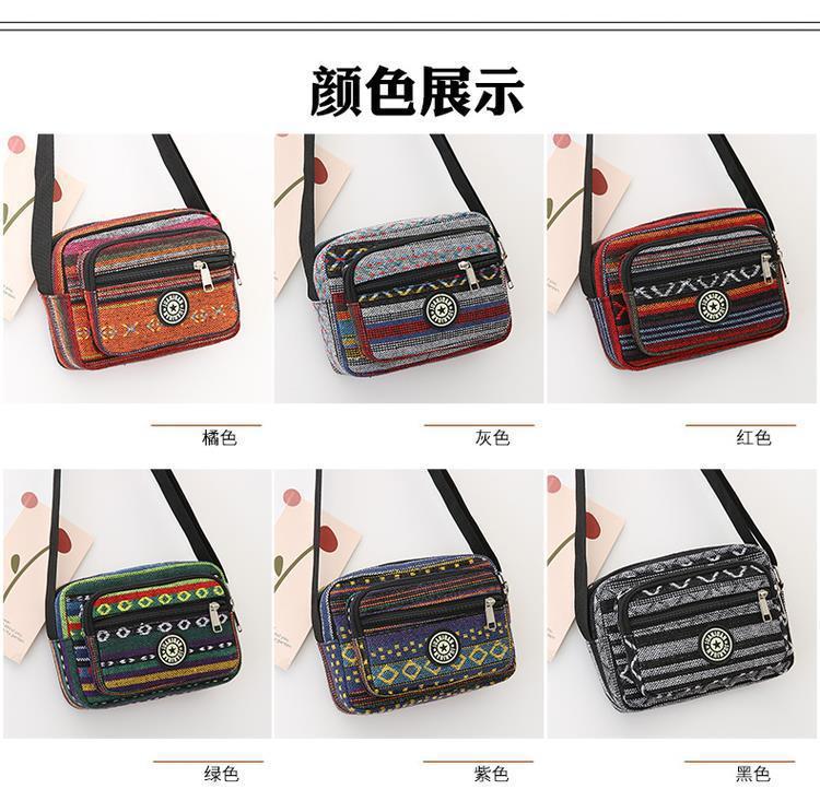 新 2025 大容量マルチポケットショルダーメッセンジャーバッグエスニックスタイルストライプキャンバスバッグカジュアル女性餃子