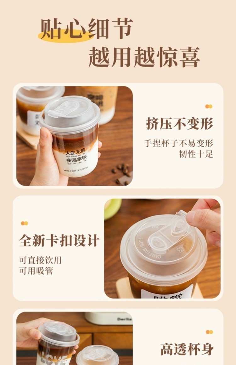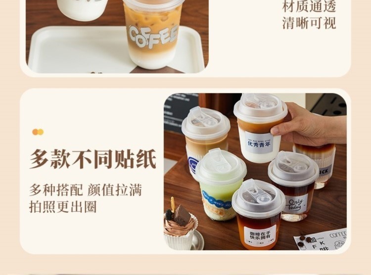 一次性咖啡杯奶茶杯子带盖塑料透明饮料杯瓶加厚外出携带外带打包