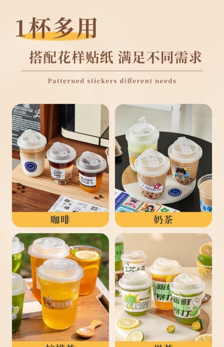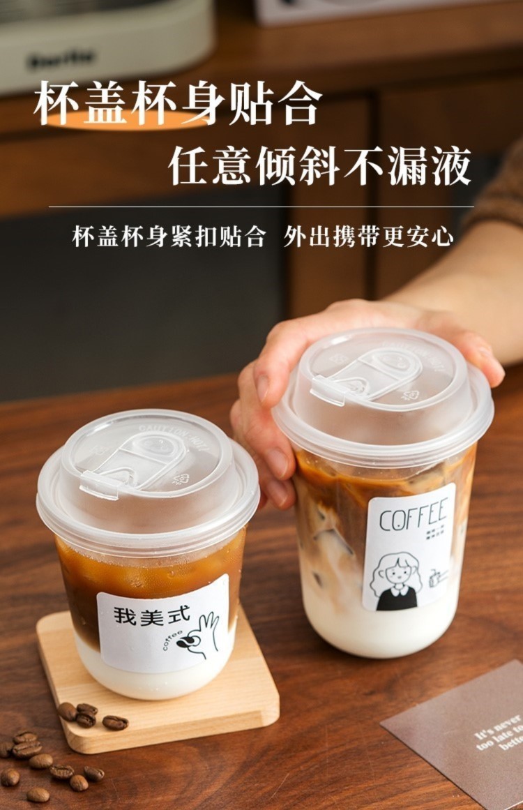 使い捨てコーヒーカップミルクティーカップ蓋付きプラスチック冷たい飲料品外出携帯店包装専用業者ジュース