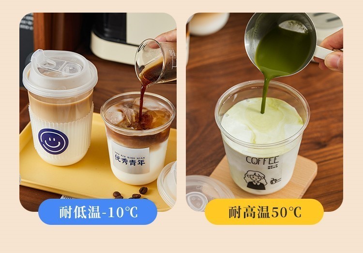 メーカーバッチペット使い捨てコーヒーカップ冷たい飲み物テイクアウト包装脂肪カップ蓋付き肥厚プラスチックミルクティーカップ
