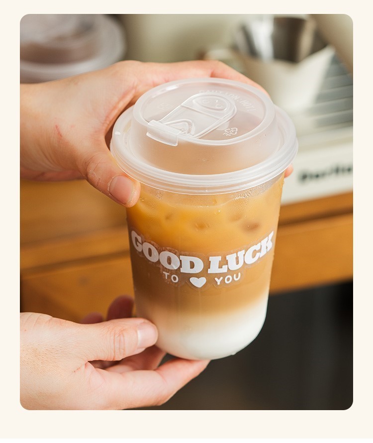 90口径ミルクティーカップ使い捨て商用レモンティージュース食品級射出成形ppカップフロスト透明蓋付き