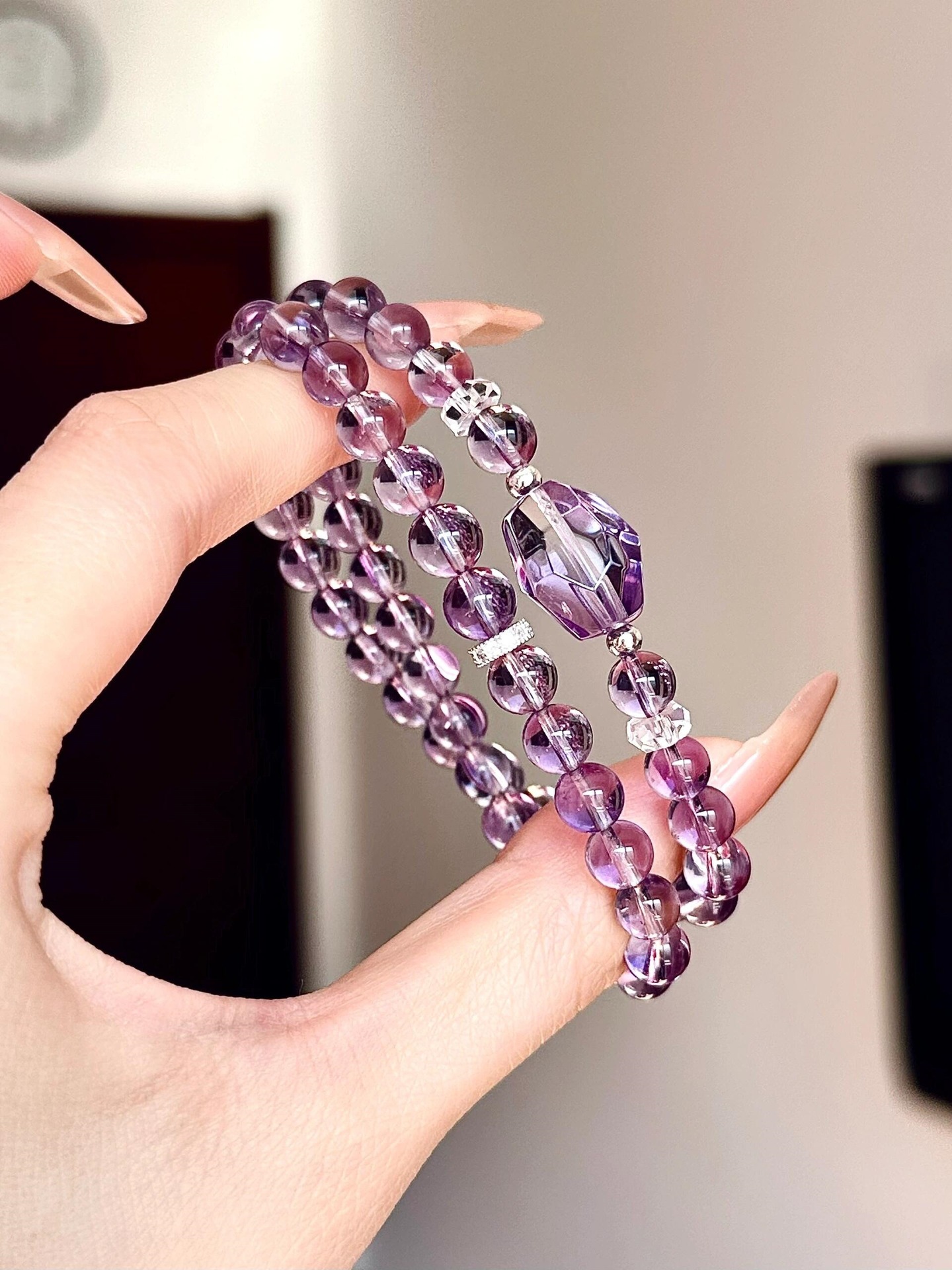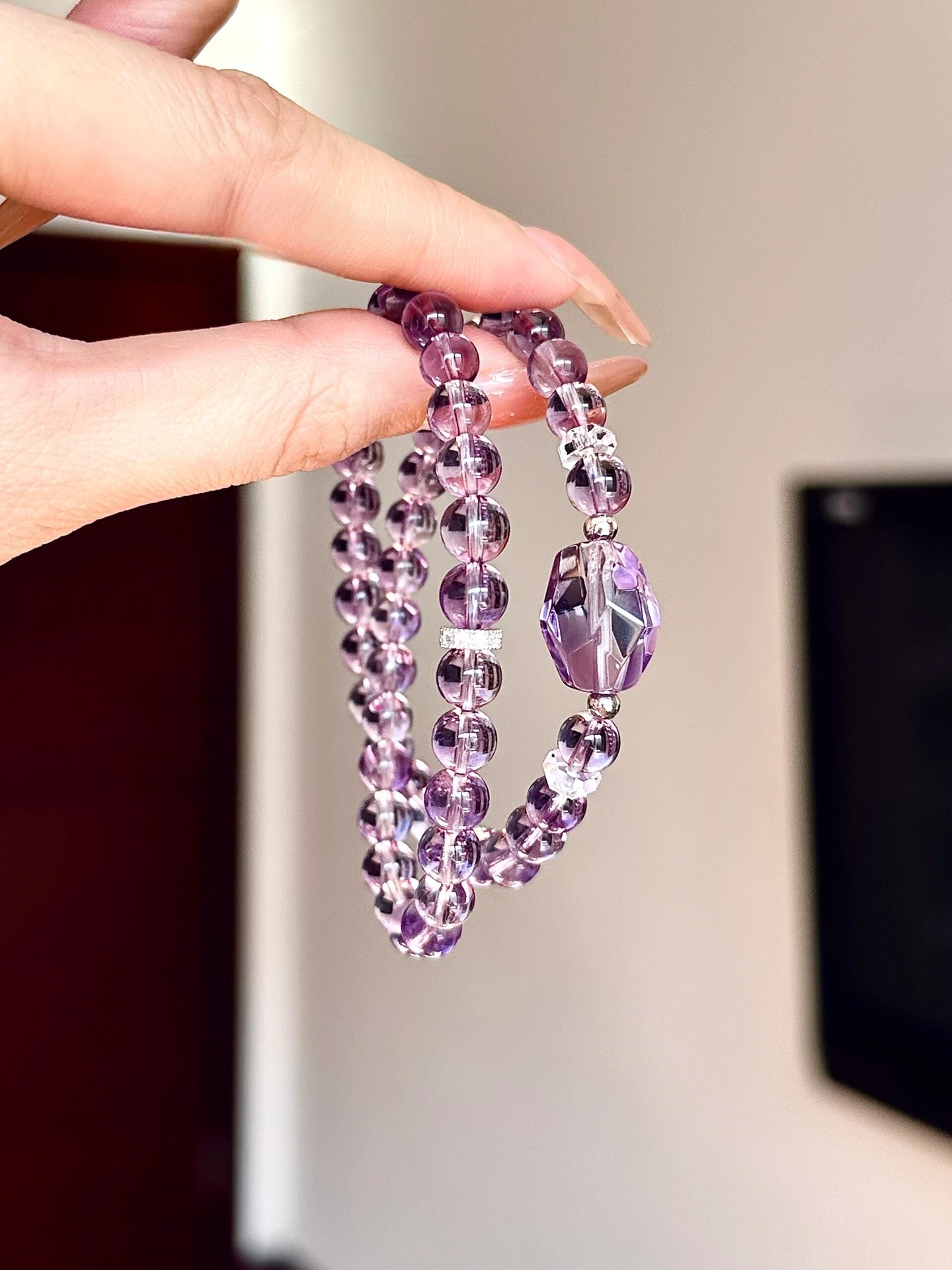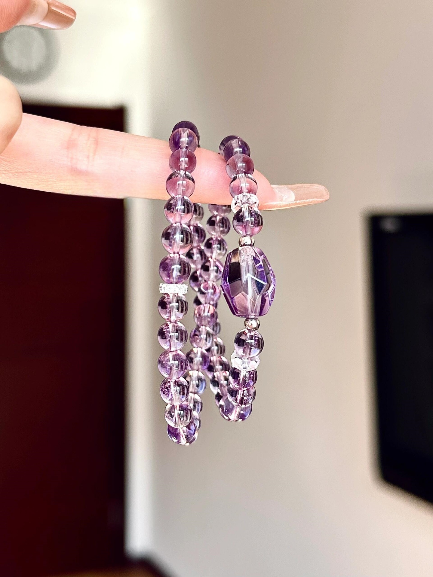 マダガスカル粉水晶手串桃花運水晶ブレスレット紫水晶転送珠水晶新年プレゼント