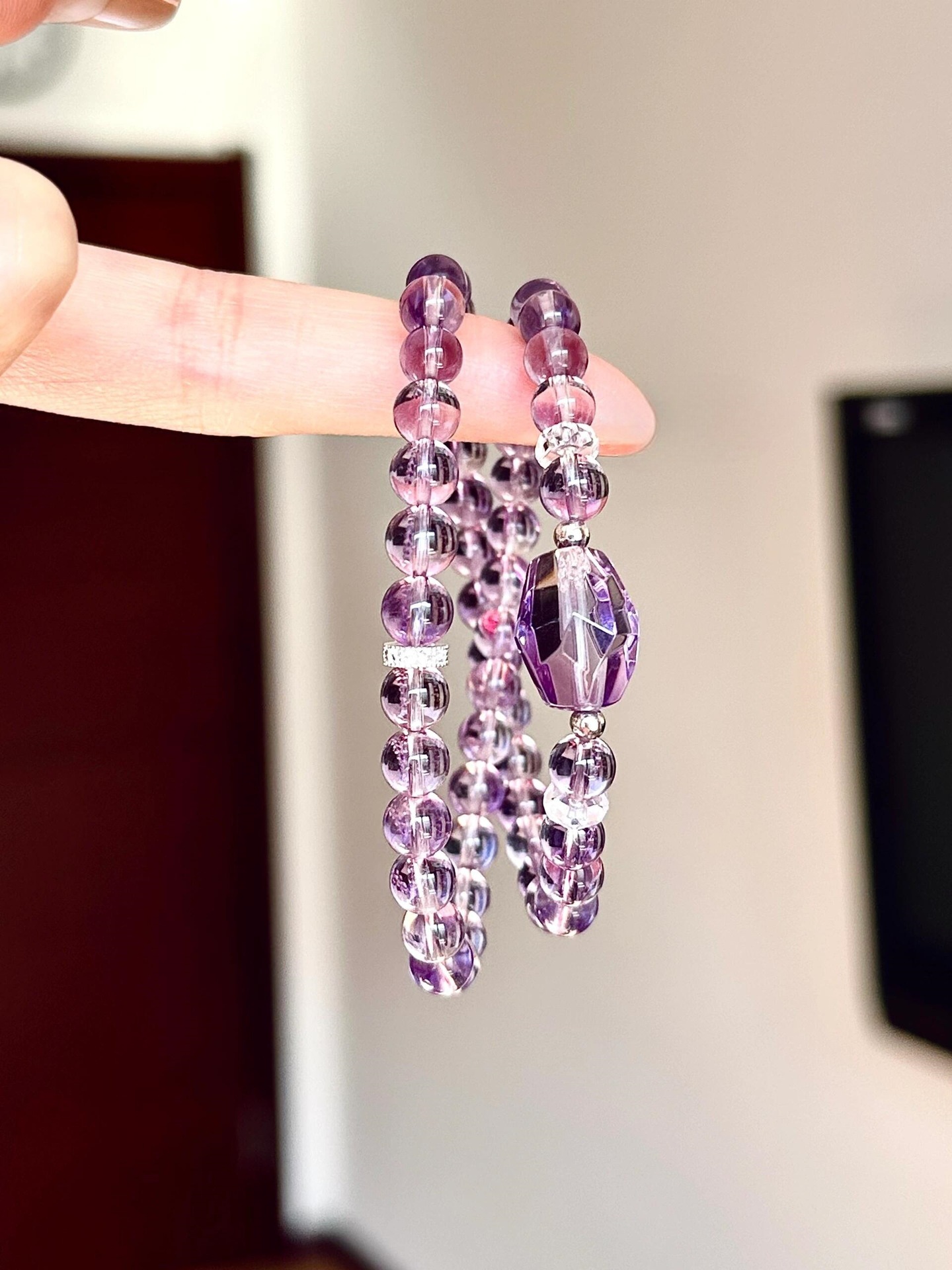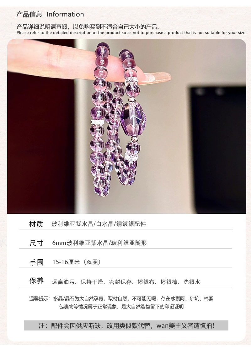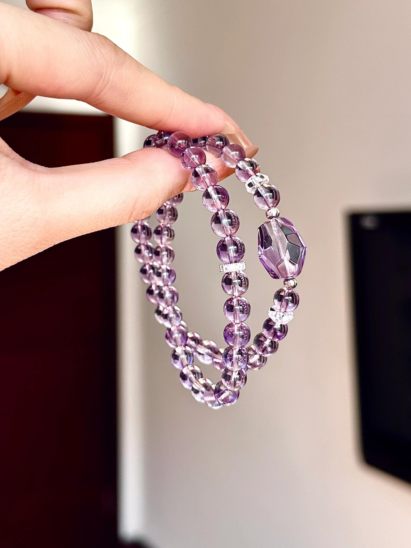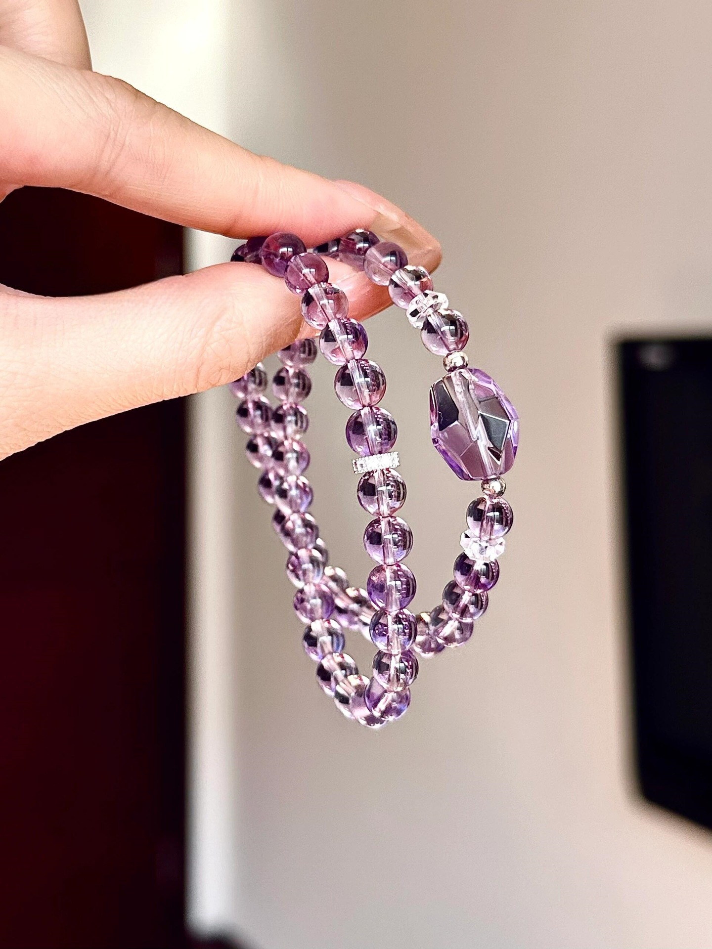 マダガスカル粉水晶手串桃花運水晶ブレスレット紫水晶転送珠水晶新年プレゼント