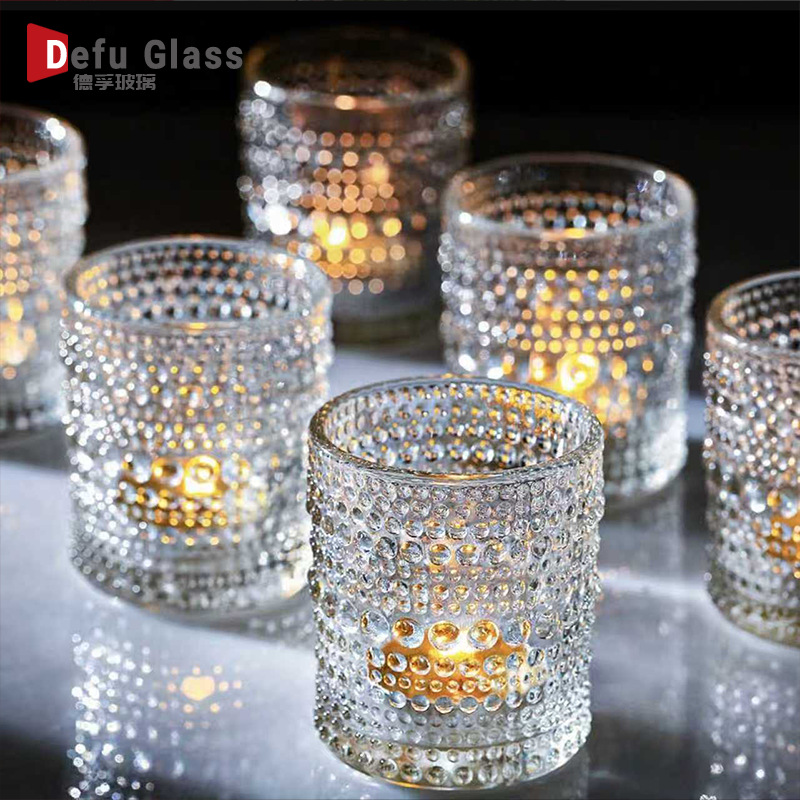 新款亚马逊爆款浮雕玻璃杯创意透明蜡烛台高颜值蜡烛杯玻璃香薰杯