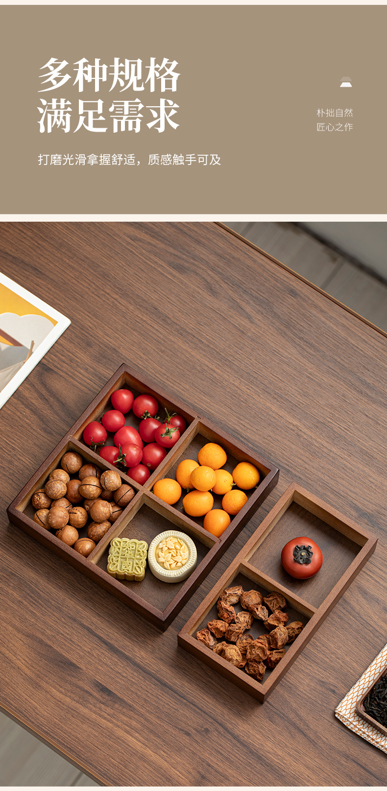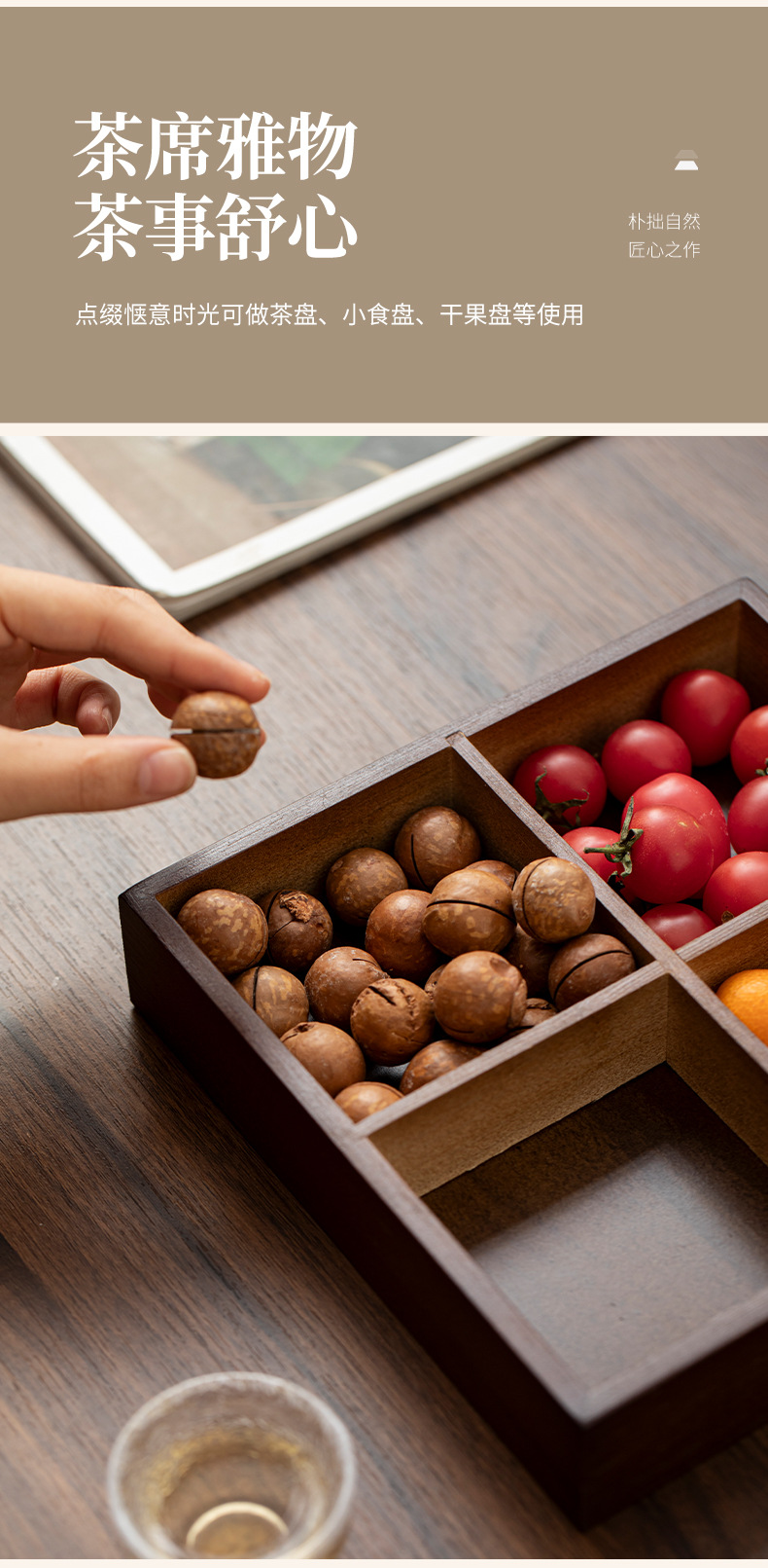 围炉煮茶摆盘实木胡桃色日式火锅盘九宫格餐盘拼盘分格小吃干果盒