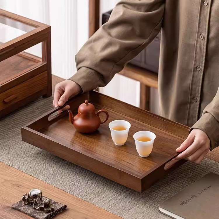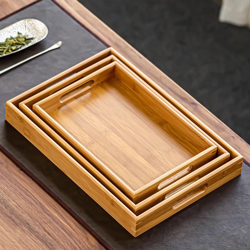 メーカー卸売り家庭用乾燥茶トレー長方形ハンドル収納盤新型竹木焼き串トレー