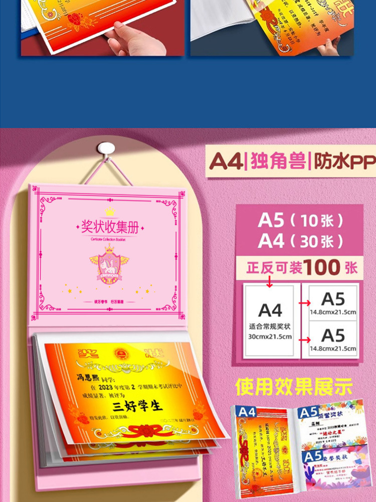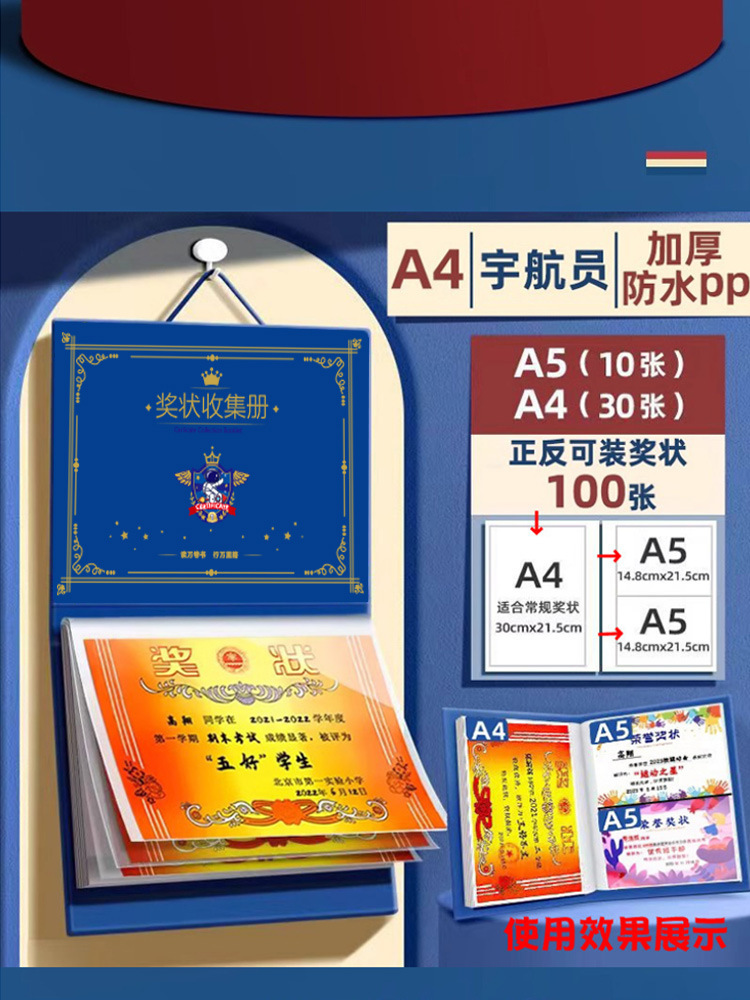 奖状收纳册可挂墙收集册通用a3大号高颜值收纳整理a4展示挂墙