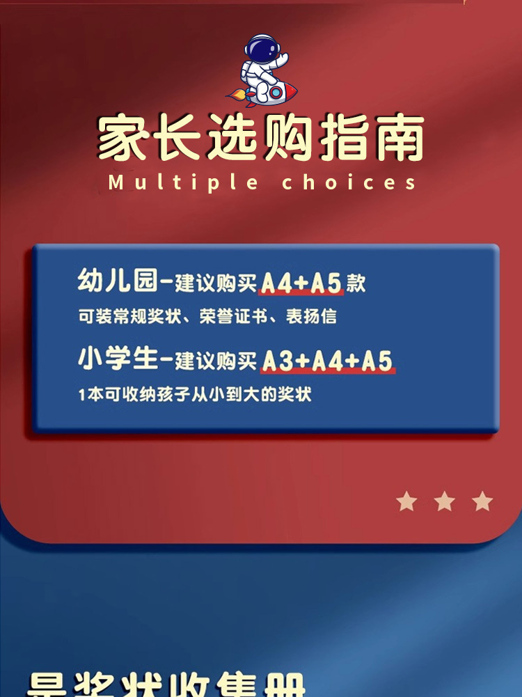 a4奖状收集册男孩女孩荣誉证书a3画册收纳工具小学生收藏本可挂墙