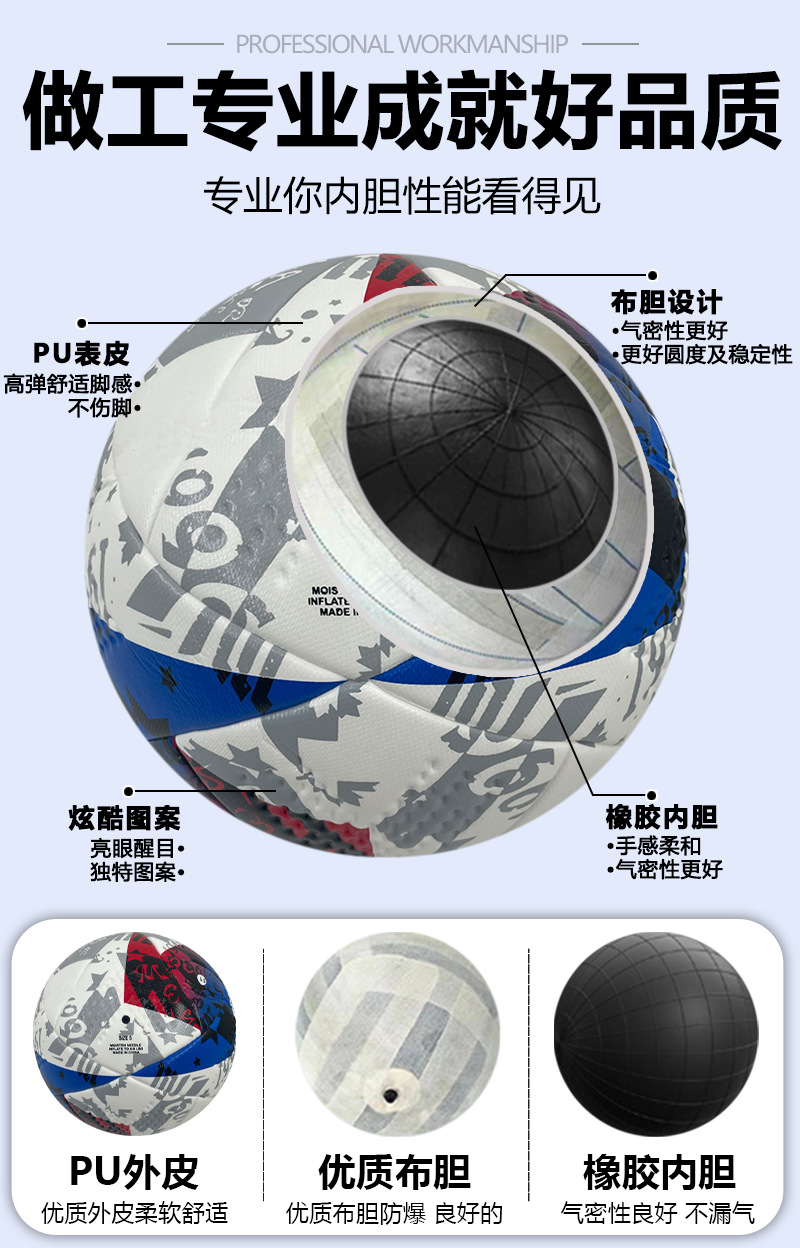 工場在庫卸売サッカー競技用防爆耐摩耗性粘着PUレザー5号サッカーボールアメリカンリーグ