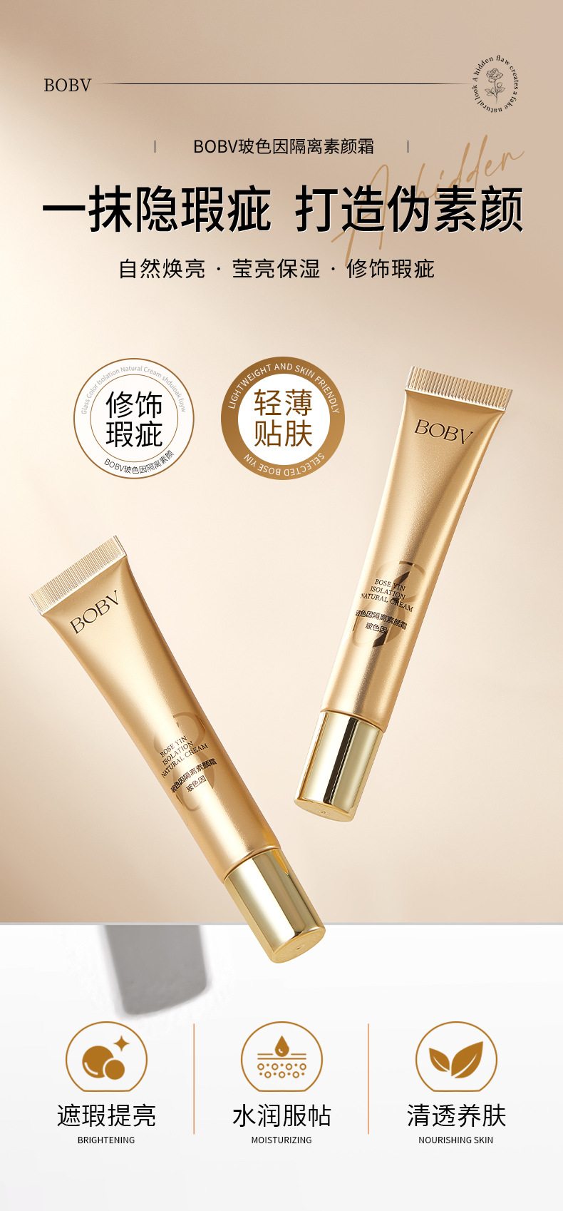 BOBV メイクアップ プライマー、ノンスティック パウダー、保湿、ブライトニング、コンシーラー、オイル コントロール、メイクアップ プライマー、ナチュラル アイソレーション メイクアップ プライマー