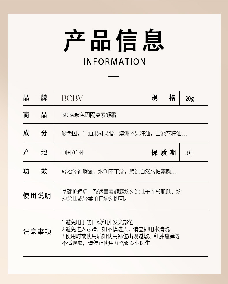 製品名 BOBV ボーズ アイソレーション クリーム 20g