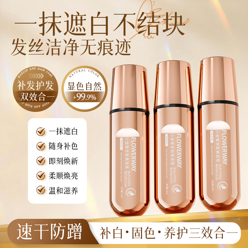 FLOWERWAY小金管多肽美发笔遮白发神器上色均匀自然带齿梳美发棒