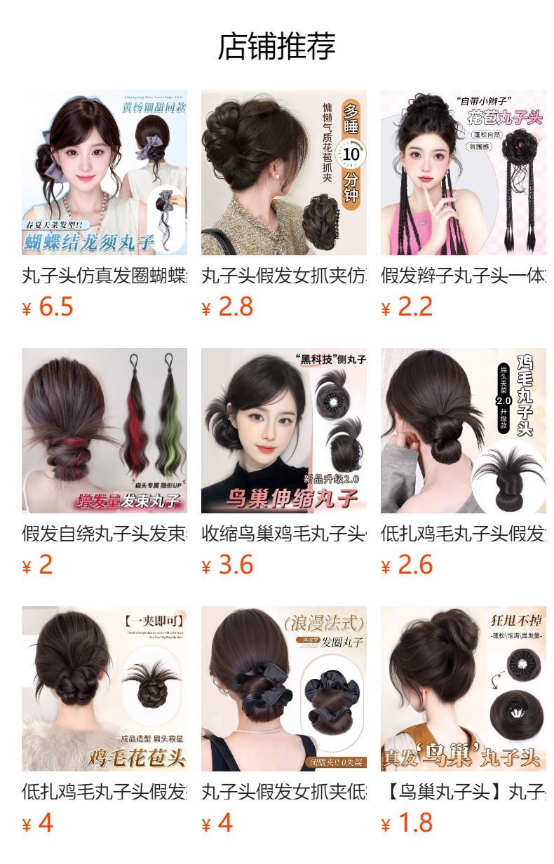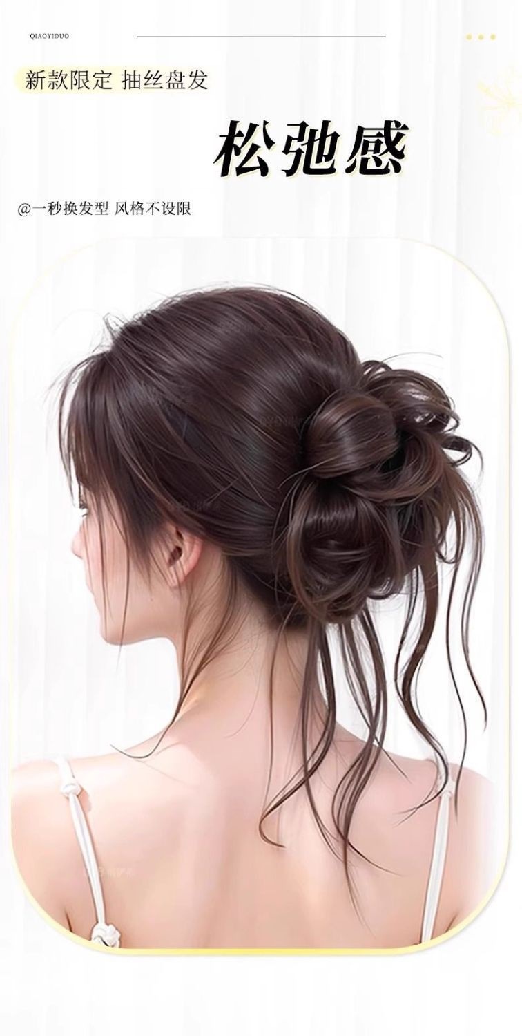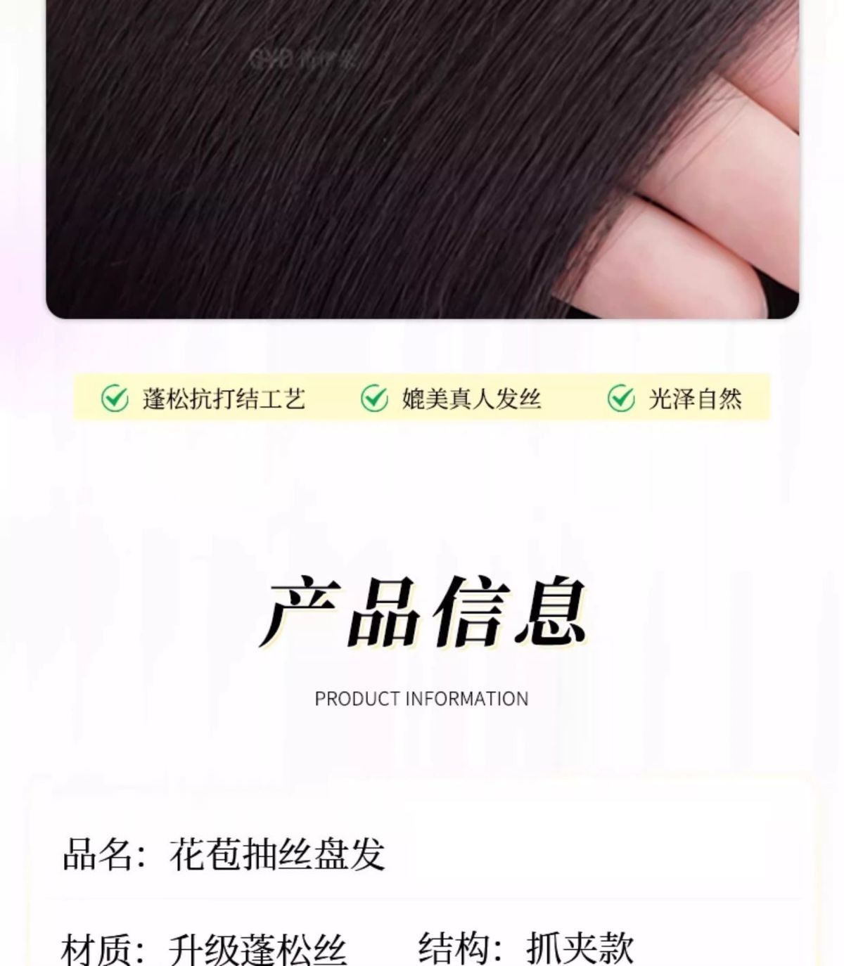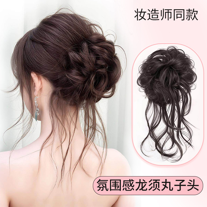 氛围感抽丝龙须低花苞丸子头假发发圈蓬松增发量神器新中式盘发包