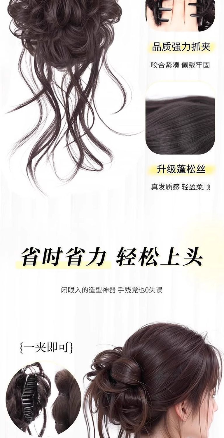 龙须丸子头假发抓夹一体式花苞头自然蓬松仿真发高低扎盘发假发包