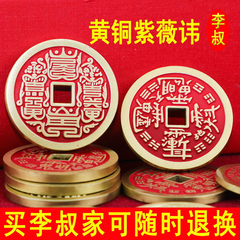 Uncle Li の厚い真鍮紫薇辰砂シーラントクリエイティブ山の鬼の花アンティークコイン銀貨キーホルダーペンダント