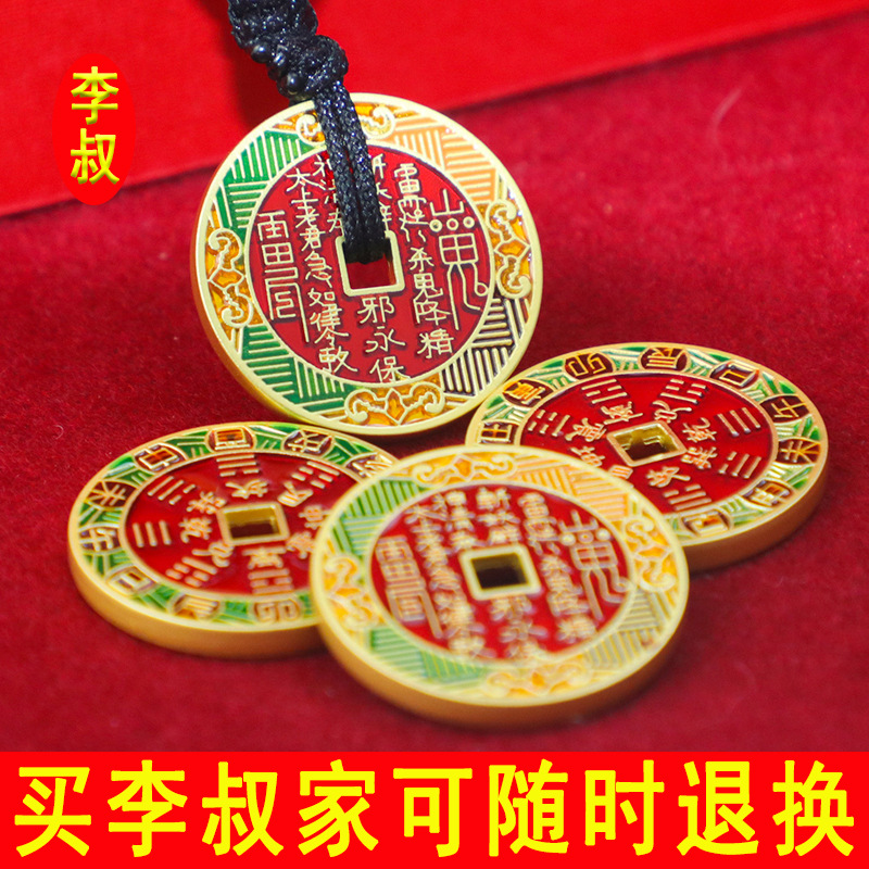 李叔の卸売方孔山鬼花钱古銭朱砂ペンダント八卦平安扣古風コイン車飾り