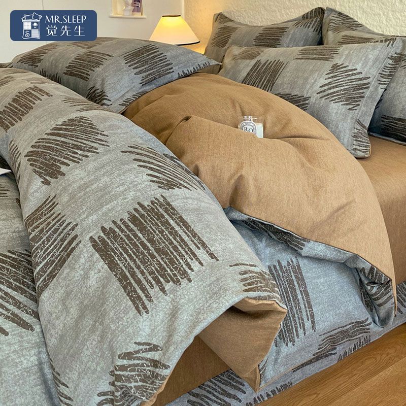 加厚磨毛四件套纯棉被套床单笠三件套简约秋冬床品