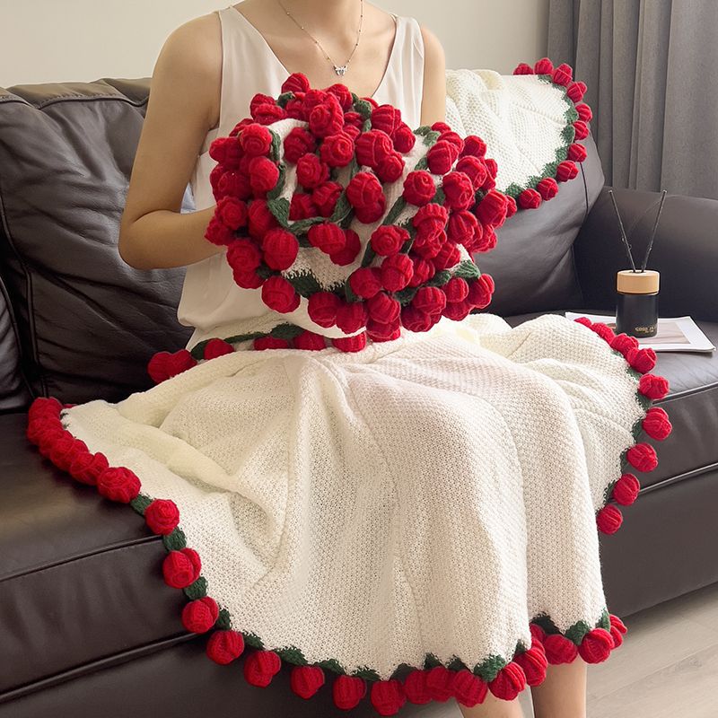玫瑰花针织毛毯办公室午休盖毯休闲毯家用沙发毯披肩毯闺蜜伴手礼