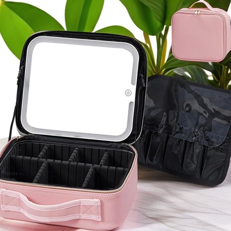 化粧品バッグ女性 2025 新しいポータブル大容量化粧品バッグメイクアップアーティストミラー感覚 LED ライト