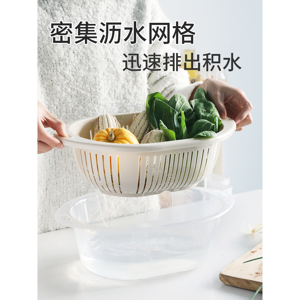 蓋付き二層プラスチック野菜洗いバスケット、キッチン排水バスケット、家庭用多機能ラウンドフルーツプレート、野菜洗い桶、フルーツバスケット