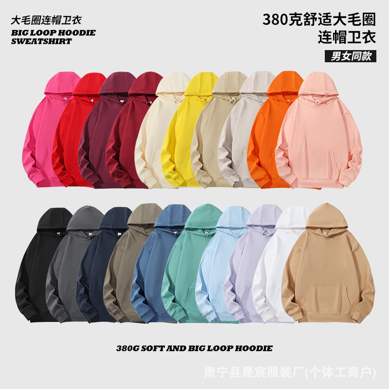 380 グラムヘビーウェイトフード付きスウェットシャツビッグテリー男性と女性のための無地スウェットシャツルーズオフショルダーカップル着用メンズパーカー