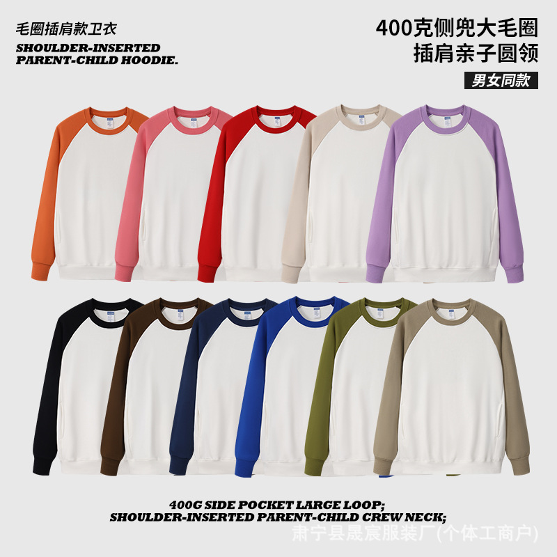 380g ラウンドネックヘビーウェイトラージテリーショルダースウェットシャツ、男性と女性用、無地オフショルダー長袖ルーズスポーツジャケット