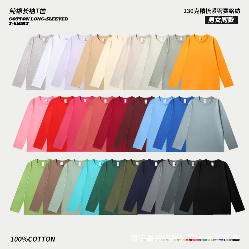 230グラム新疆精櫛緊密レース綿100% 春秋モデルゆるい潮牌丸首長袖tシャツ男女シャツ