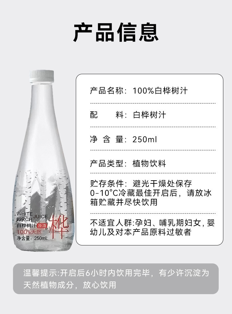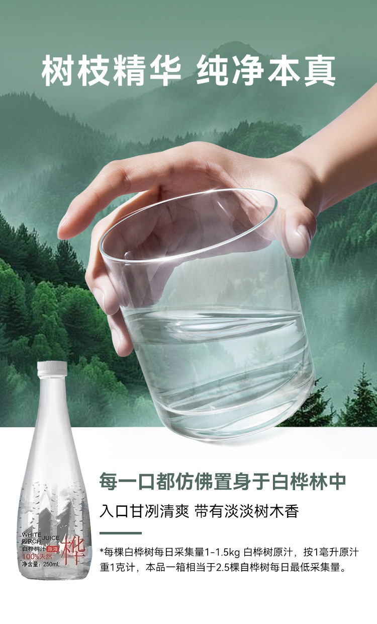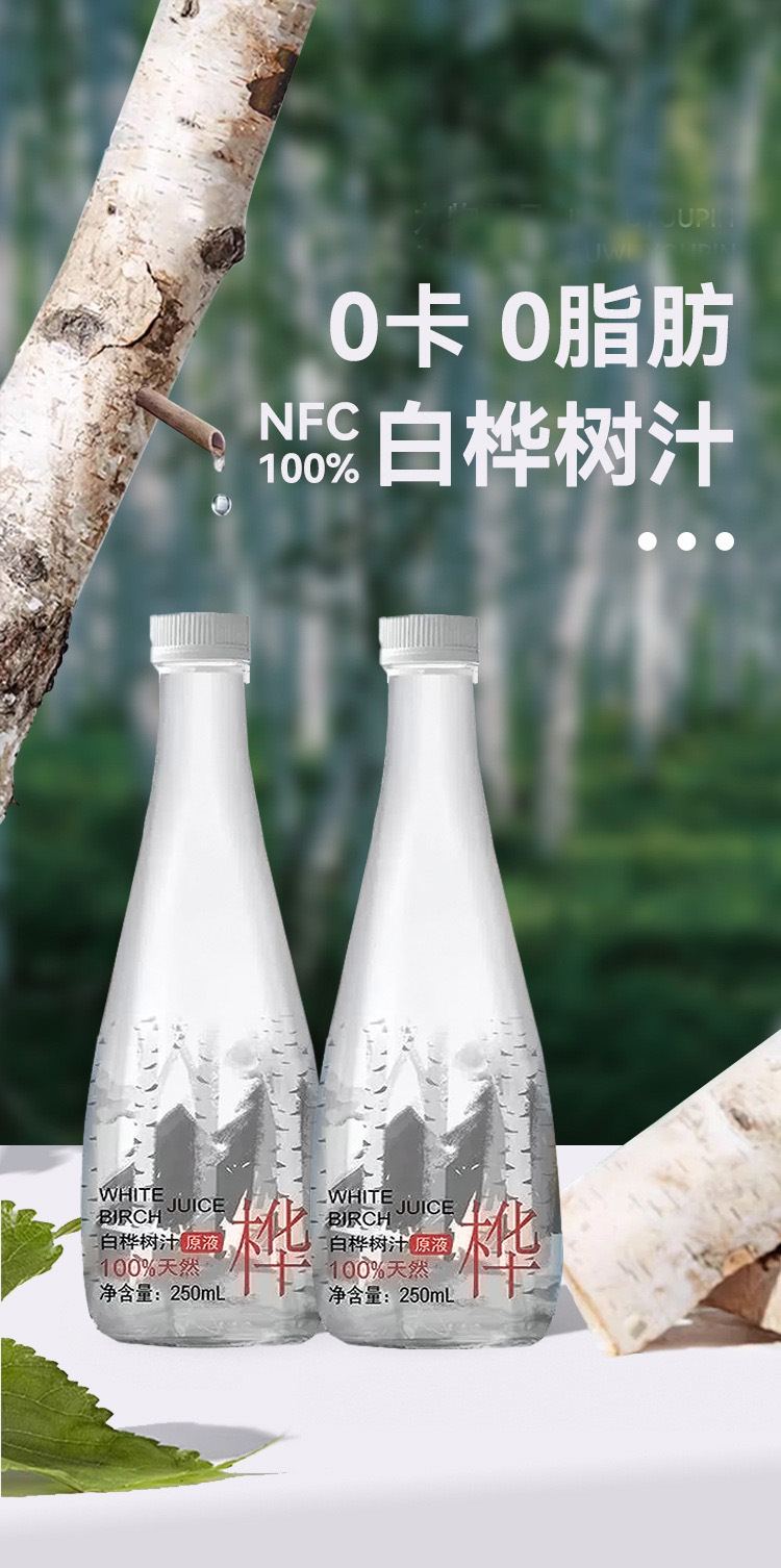 白桦树汁原液原汁白桦树汁大兴安岭浓缩冲饮果汁整箱250ml'*10瓶