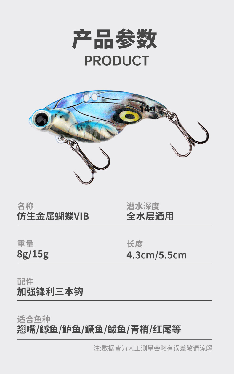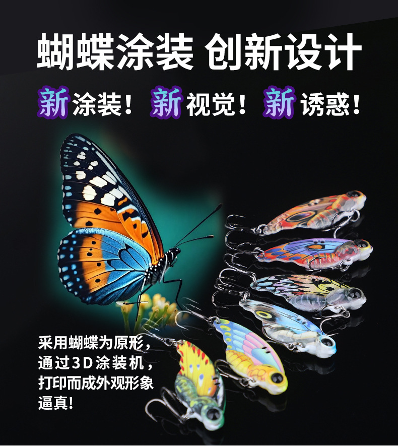 铅包铜vib路亚饵5g-20g3D仿生蝴蝶VIB假饵薄背震颤路亚翘嘴鲈鱼饵