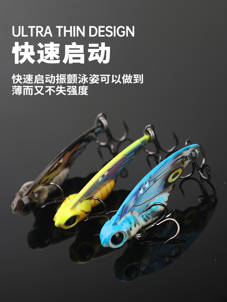 バイオニックバタフライ VIB 遠投金属ルアー 3D 塗装プリント薄型バック振動ルアーハードベイト卸売