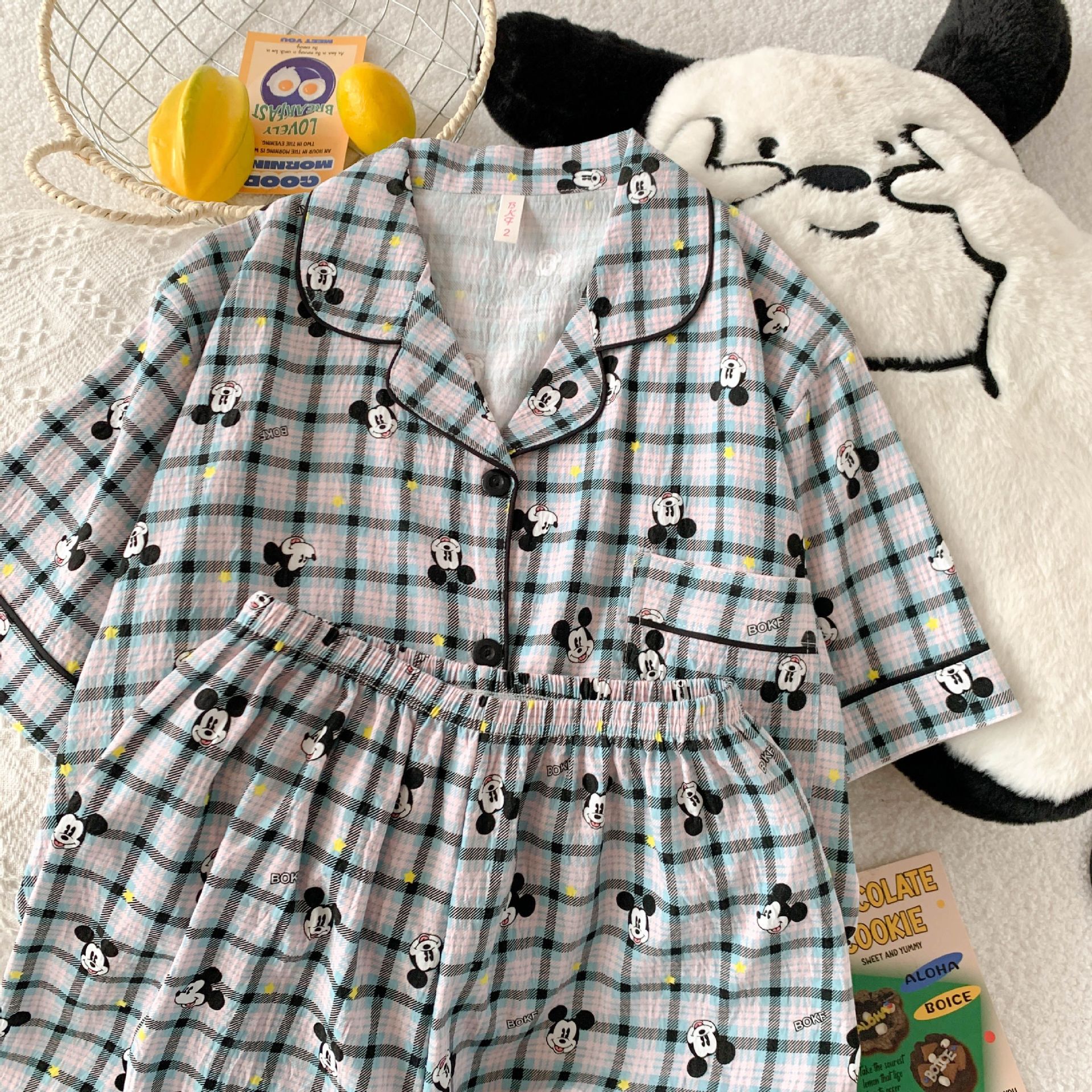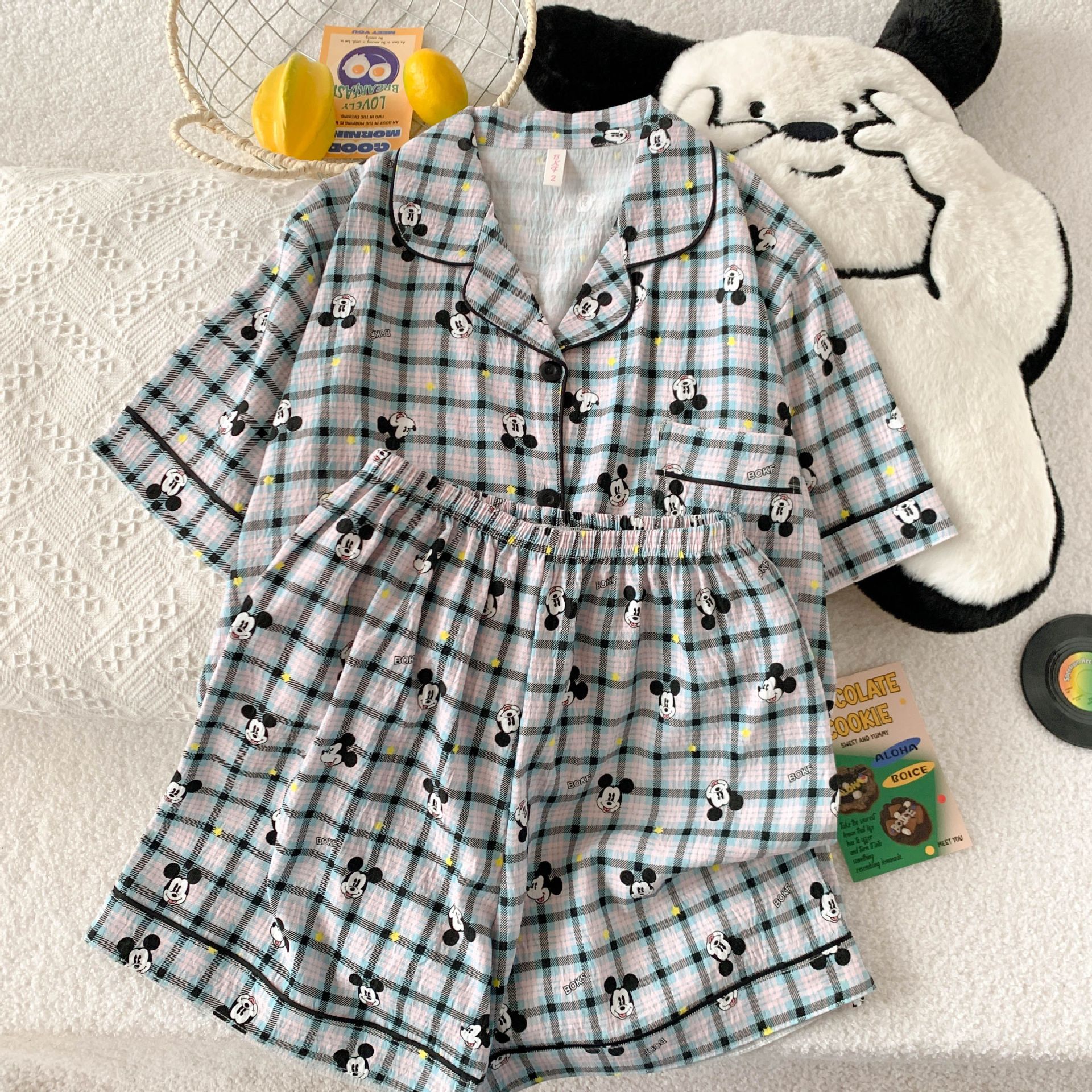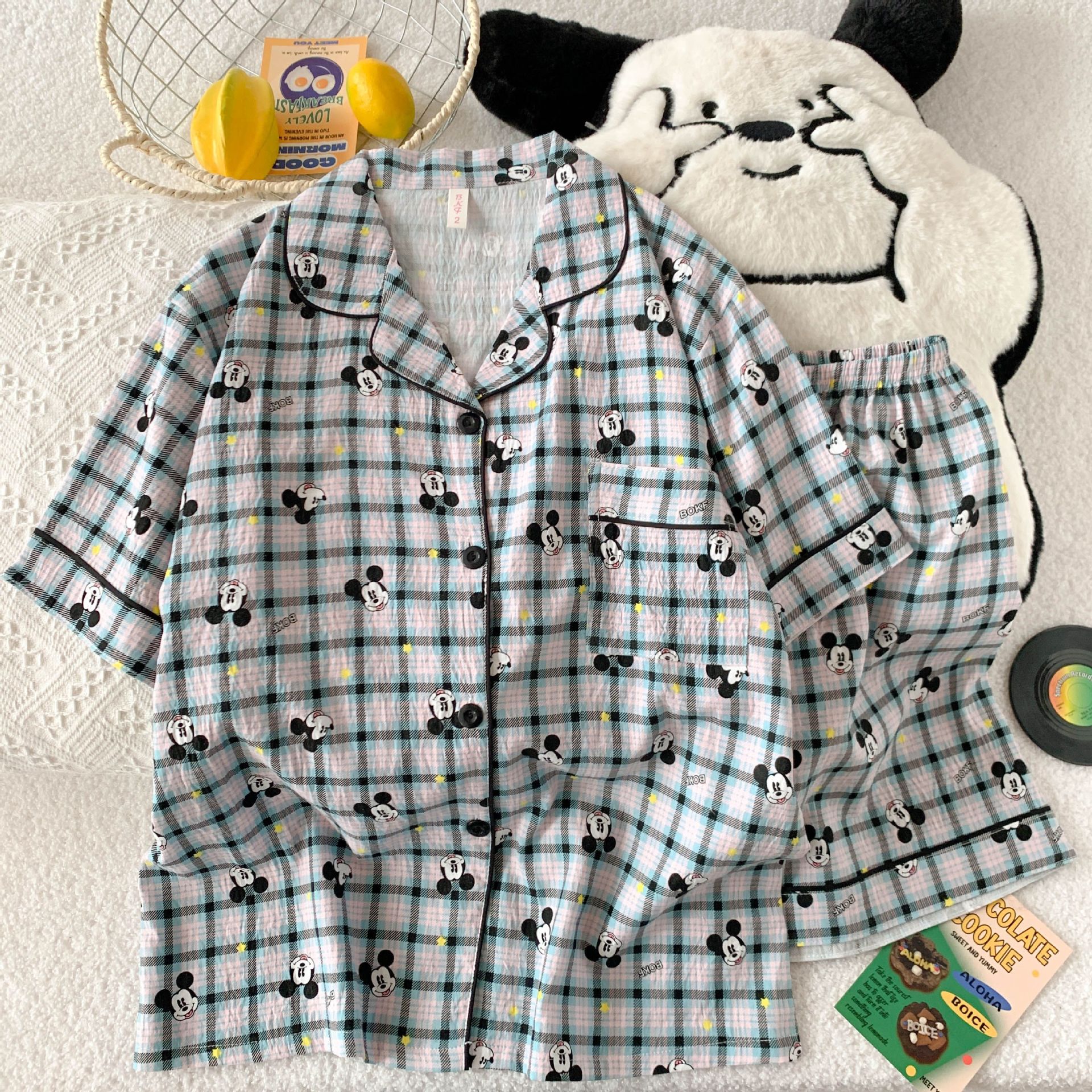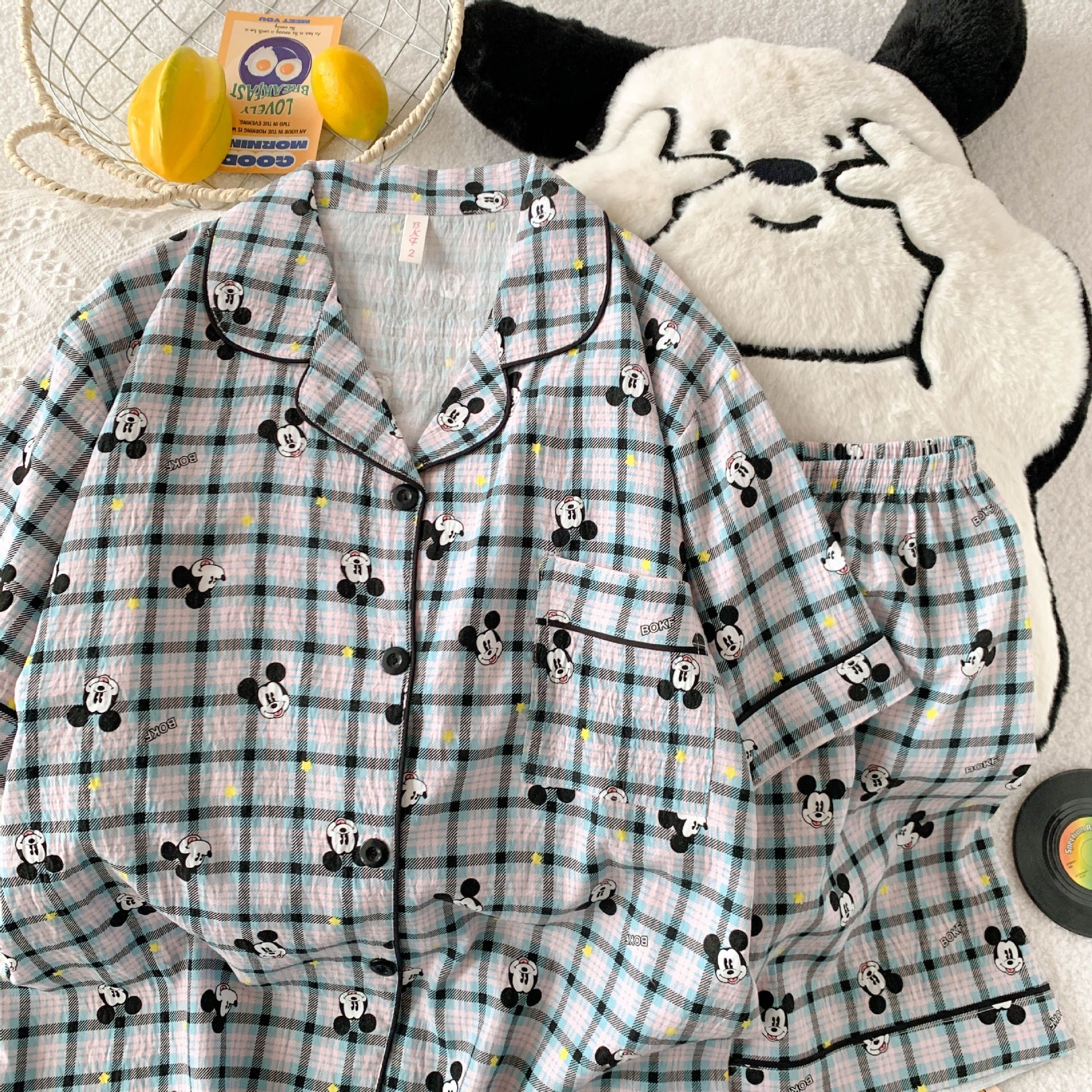 クロスボーダー卸売クラウドコットンパジャマ女性の夏の新しいカーディガンラペル半袖ショーツ甘くてかわいいホームウェアセット