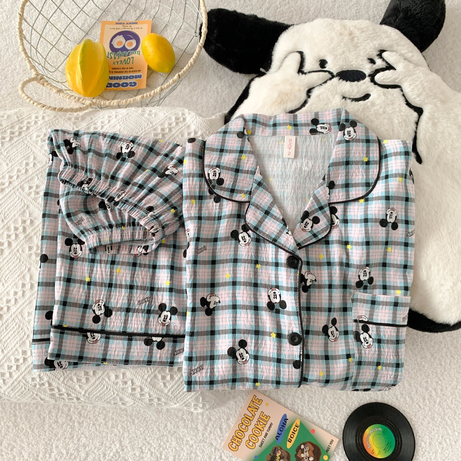 跨境批发秋云朵棉长袖睡衣女长裤卡通开衫翻领可爱家居服有量有价