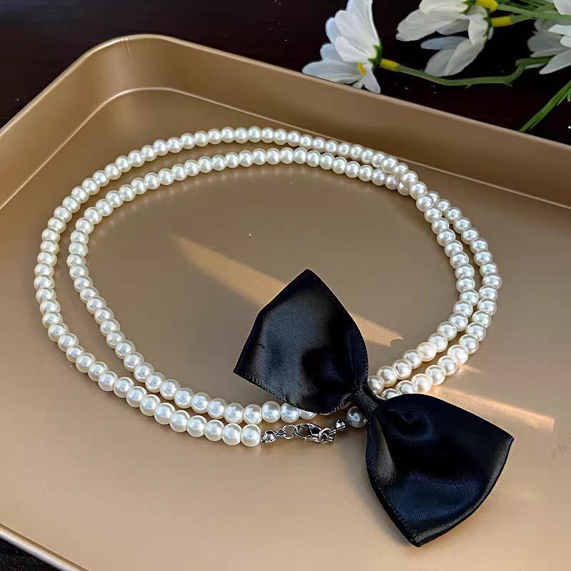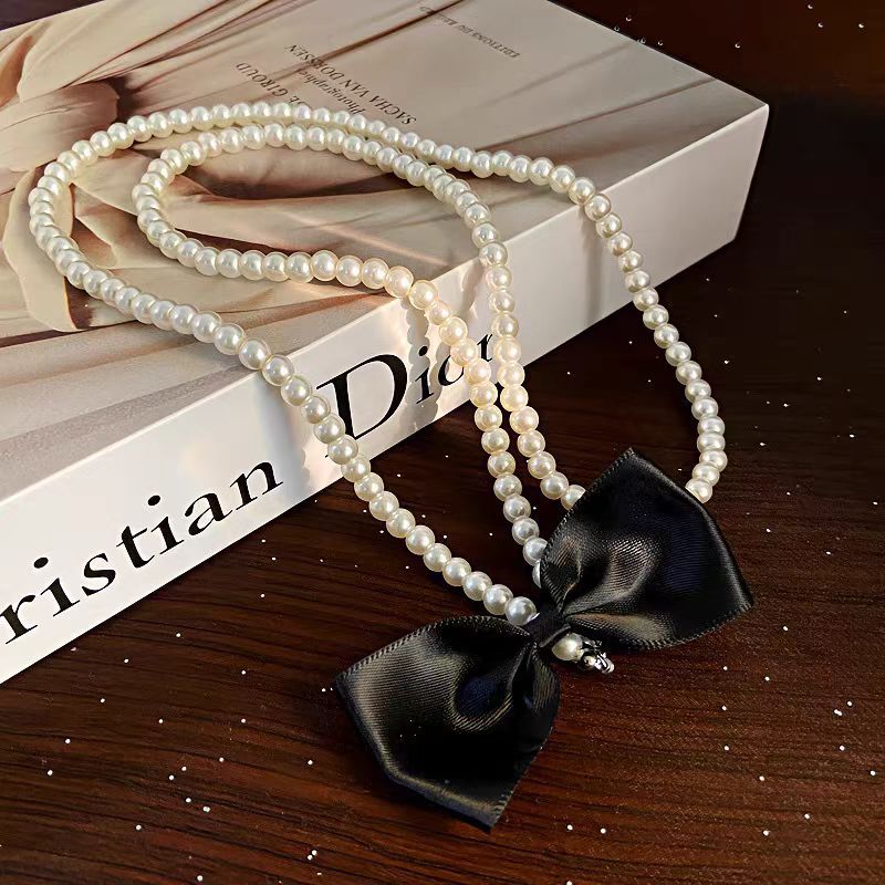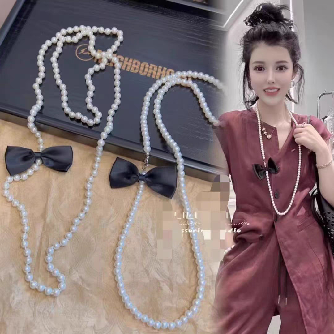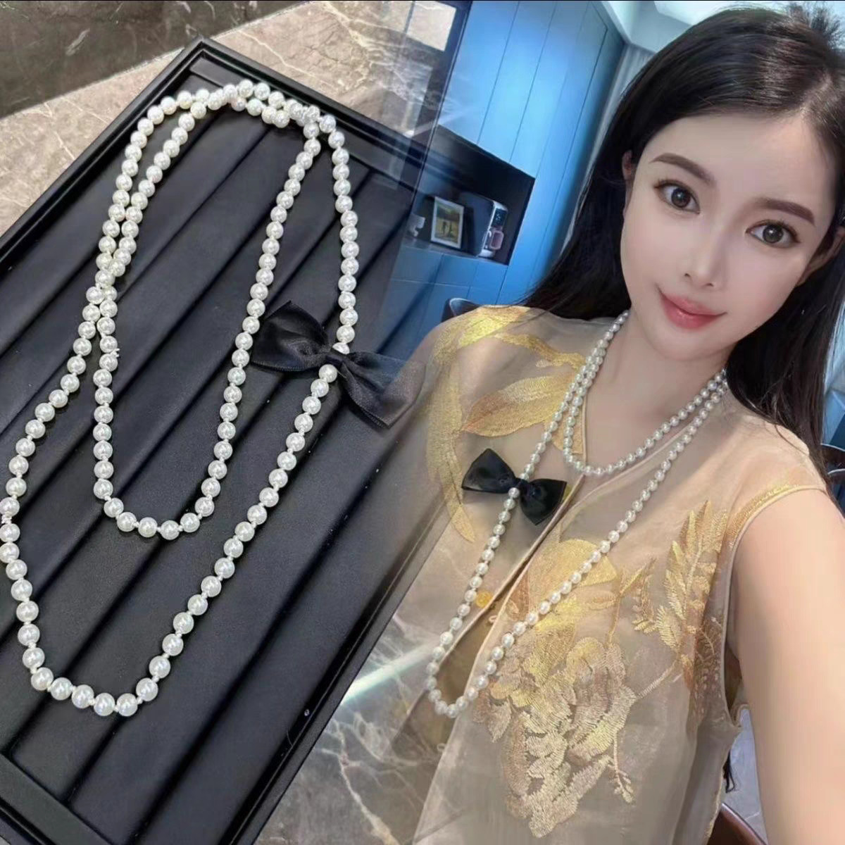 工場卸売りの起爆蝶結び真珠の長いネックレス女性の甘い大衆デザインのセーターチェーンの高級感