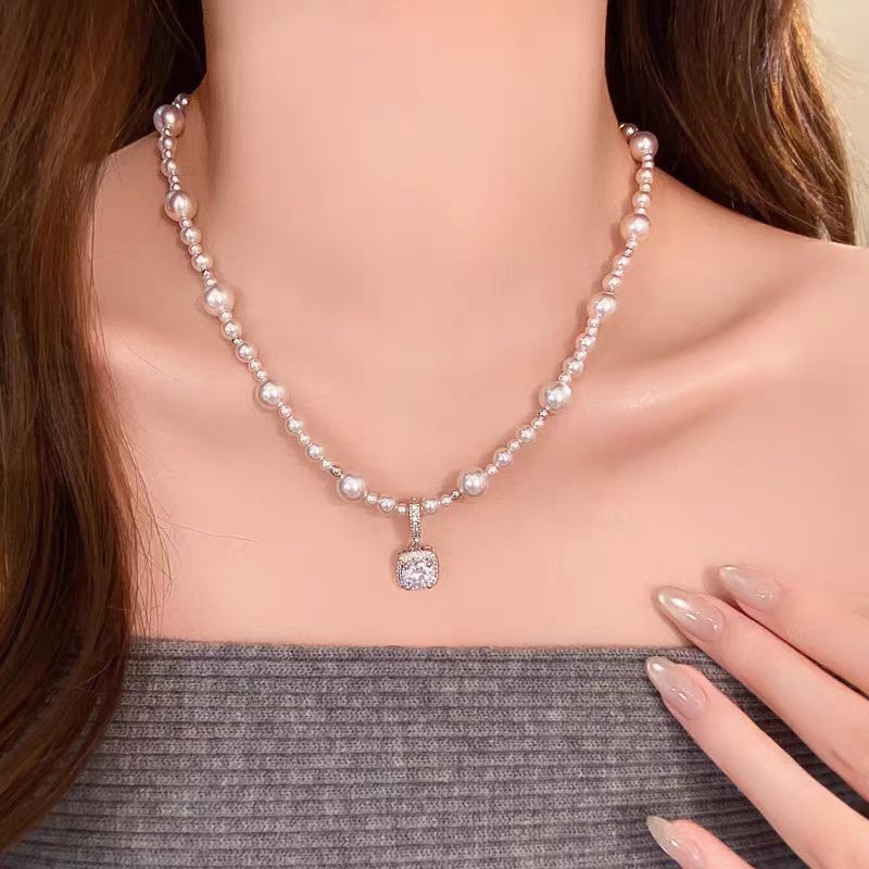 ジルコンペンダント模造真珠シュガーキューブネックレスライト高級多用途ニッチ鎖骨チェーンファッショントレンディなネックレスメーカー卸売