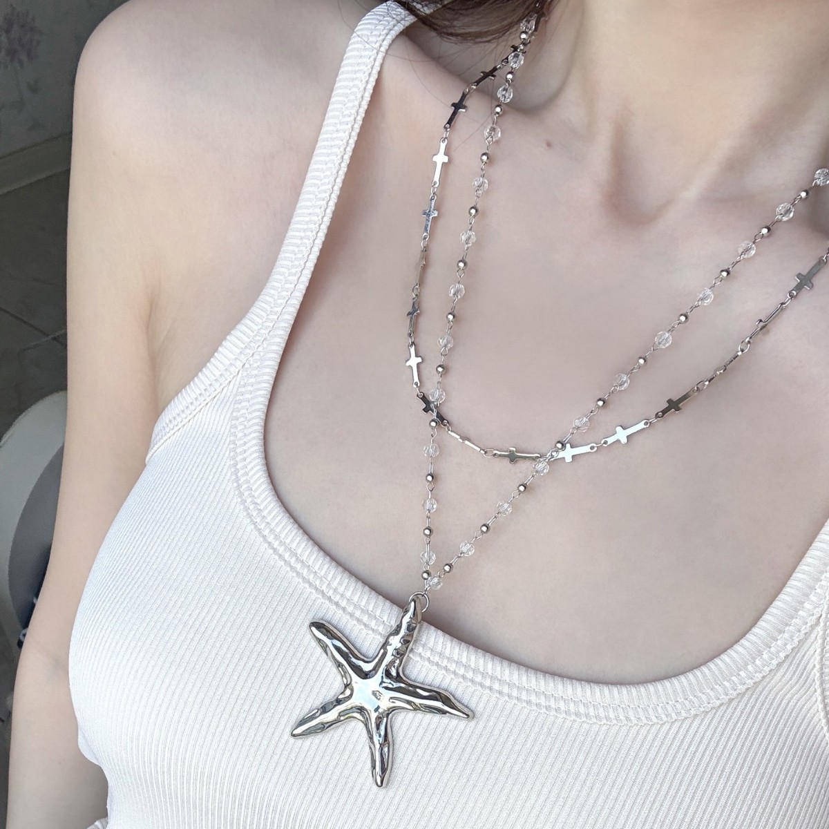 银色海星颈链辣妹锁骨链多层项链女长款毛衣链轻奢小众锁骨链配饰